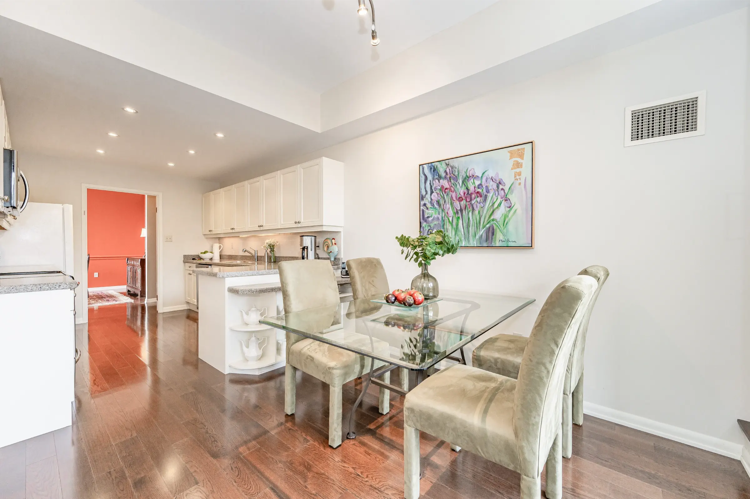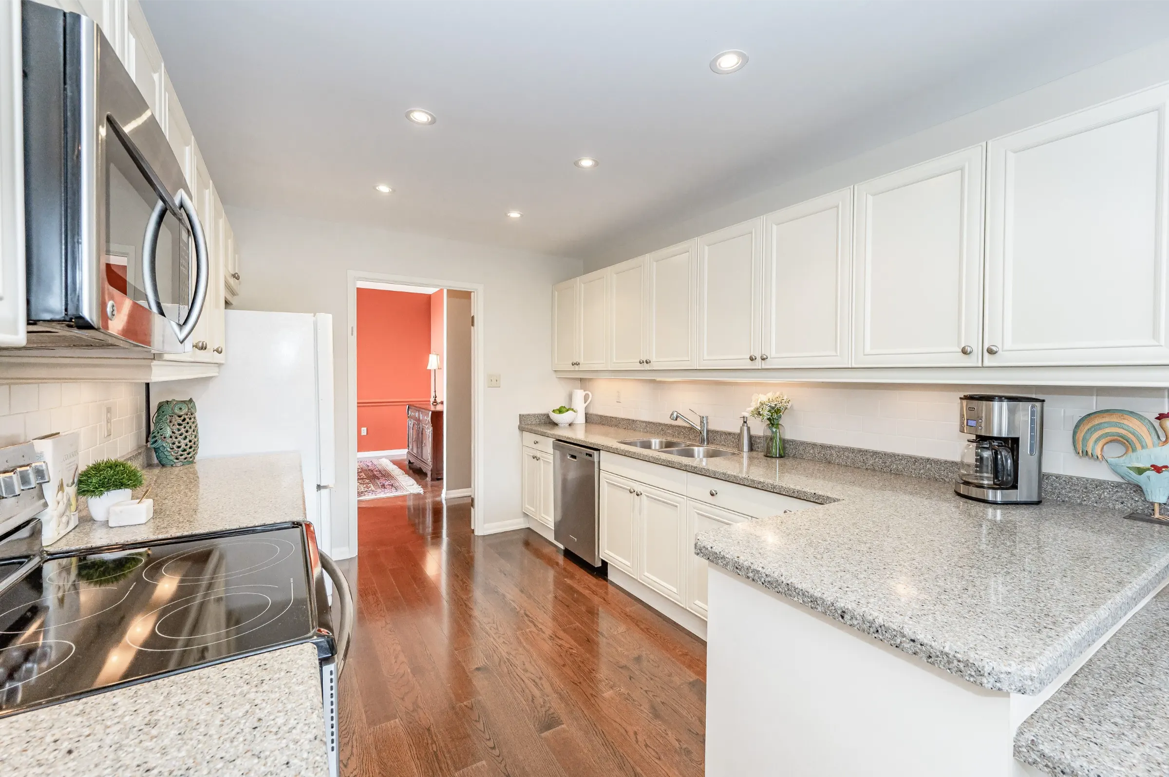 Impressive foyer with stunning mirrored tray ceiling & large walk-in closet. Galley style kitchen equipped with plenty of cabinetry & granite counter space, undermount lighting & stainless-steel appliances. This space also has a breakfast room with walkout to the incredible gorgeous private terrace complete with lush gardens which truly brings the outdoors in. Including a large sophisticated formal dining room, impressive living room & convenient corner den. This is a highly functional, well-designed space for entertaining & everyday living.