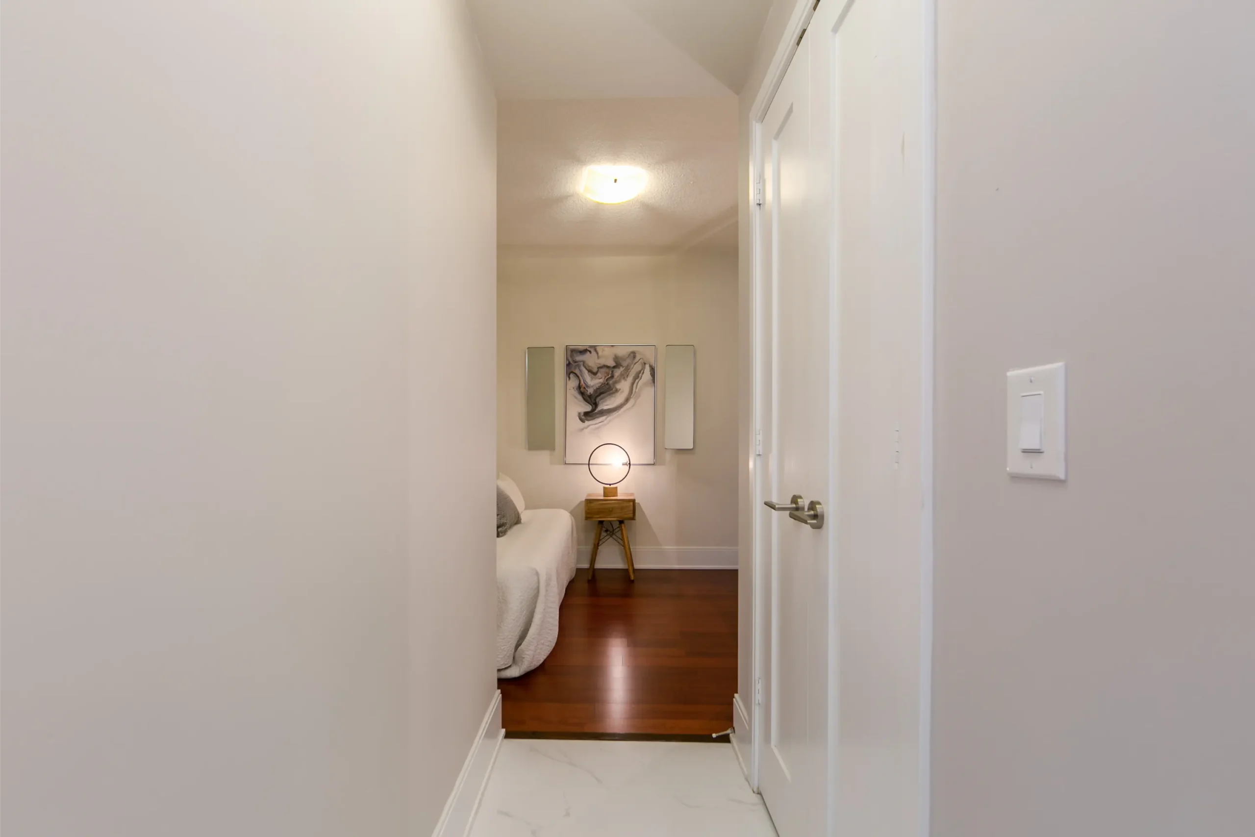 Intimate master bedroom retreat featuring a large walk-in closet & additional closet with 3 sliding mirrored doors & private 3-piece ensuite with walk-in shower. Bright 2nd bedroom with double sliding closet doors & main 4-piece bathroom with tub/shower combination. Spacious private den, convenient in-suite laundry & linen closet complete this magnificent home.
