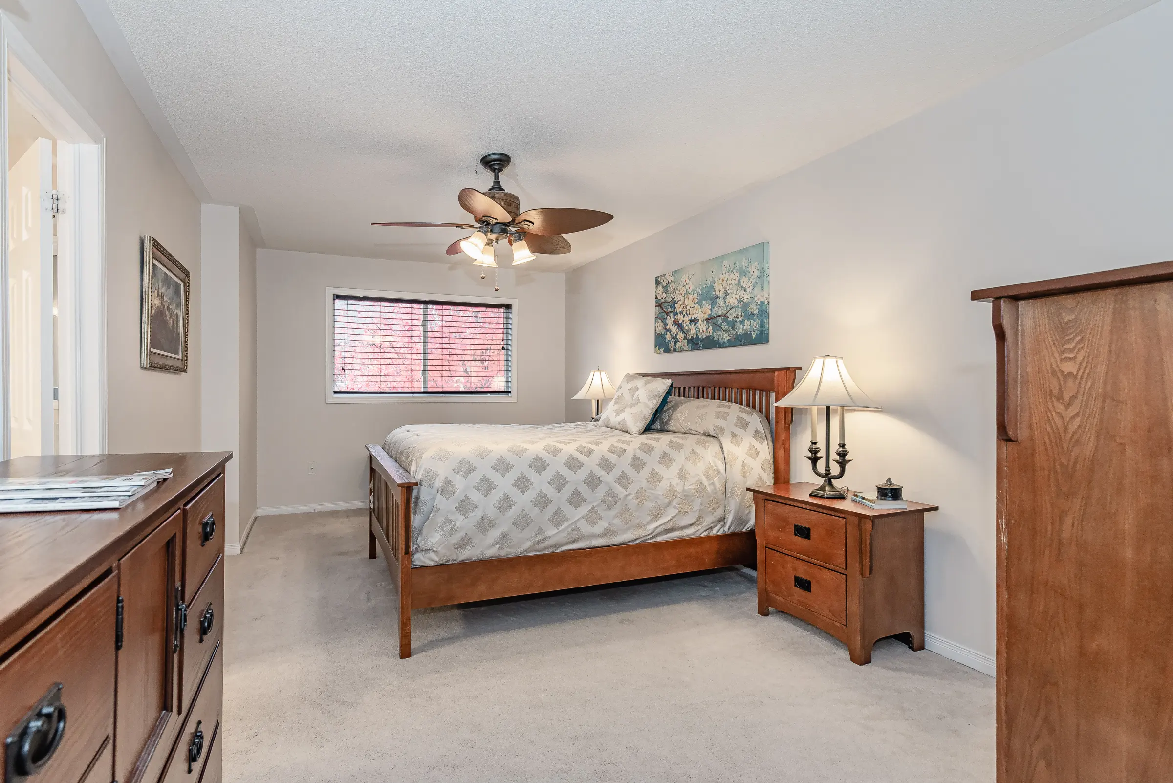 Upgraded wood staircase leads to the second level boasting a spacious master bedroom retreat with 2 walk-in closets, large window with blind and private 4-piece ensuite bathroom with soaker tub and stand-alone shower. Two additional good sized bedrooms with broadloom and closets, 4-piece main bathroom and linen closet complete the upper level.