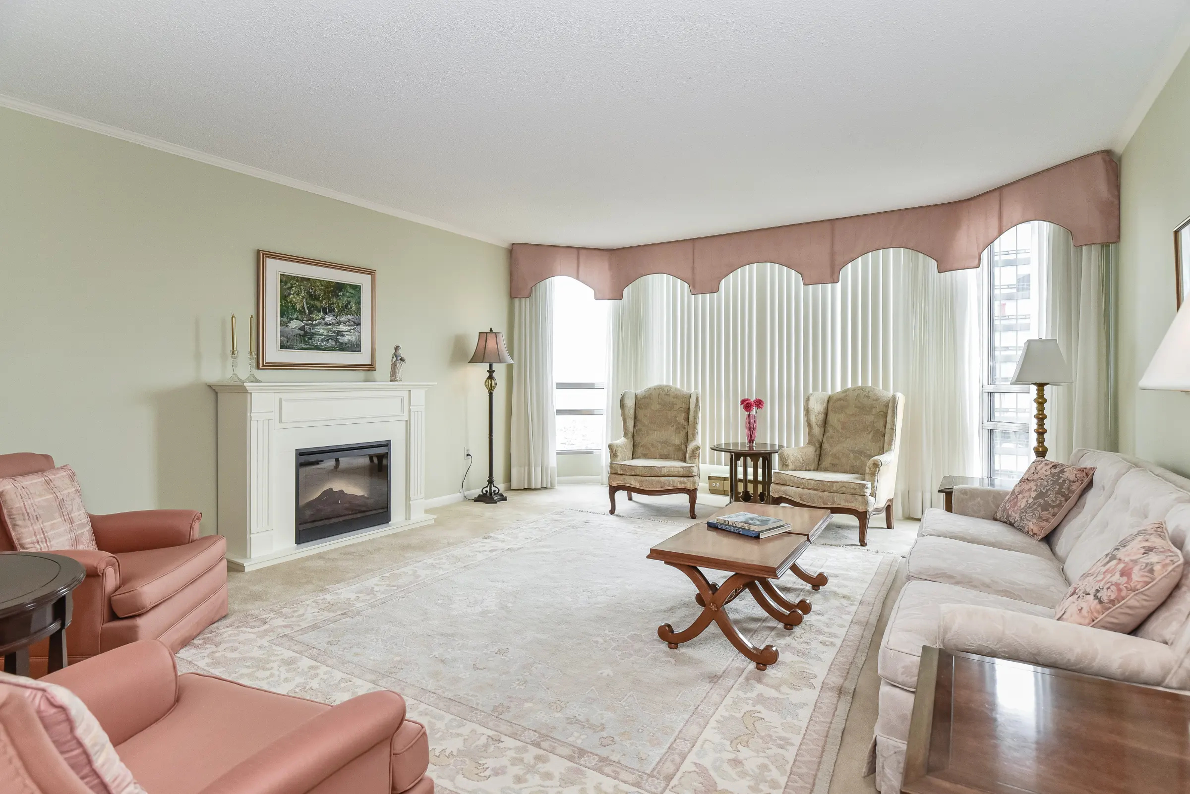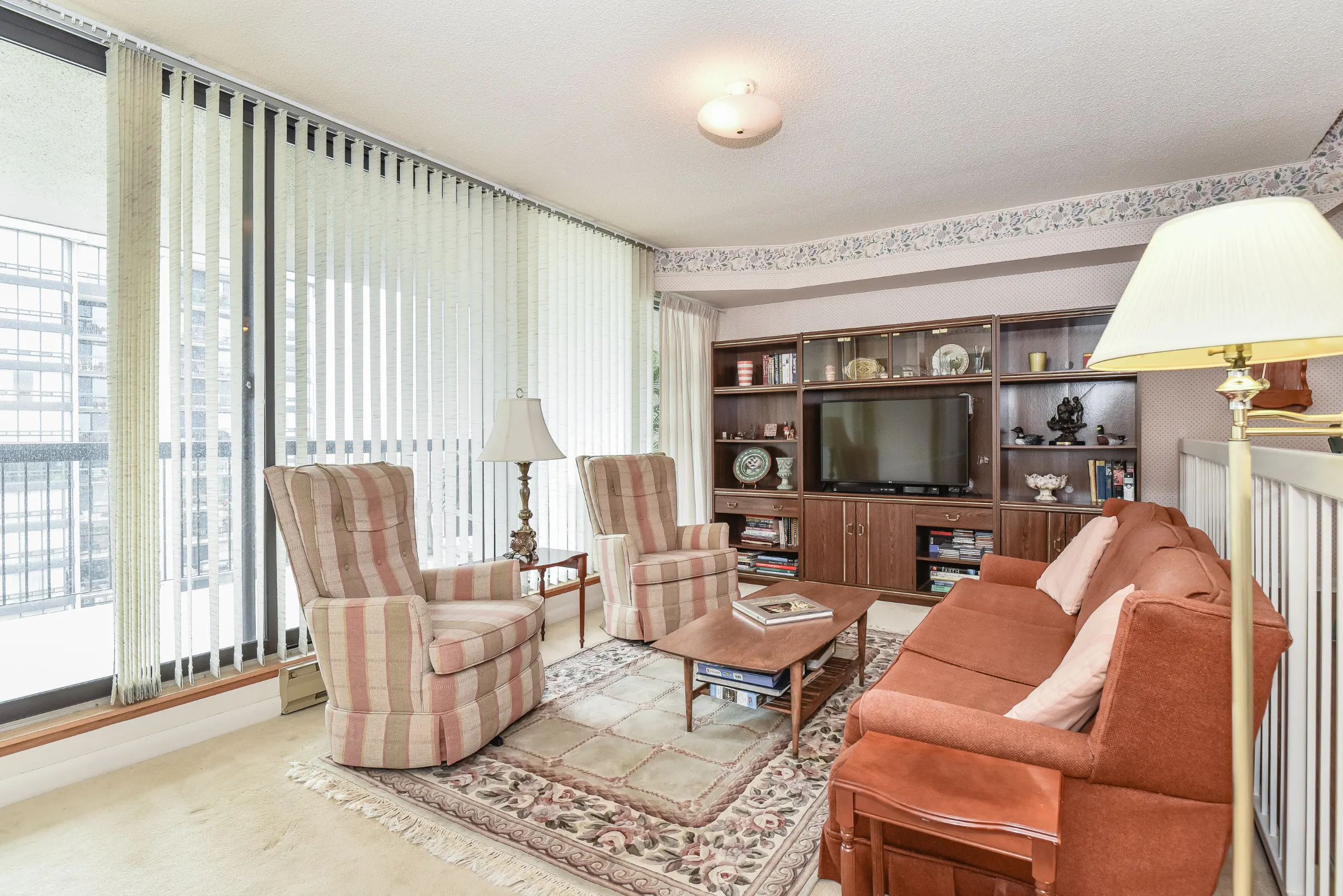 Generous master bedroom retreat with floor to ceiling windows, three sets of sliding closet doors providing plenty of storage & 3-piece ensuite with walk-in shower. 2nd bedroom & main 4-piece bathroom with tub/shower combination. Convenient in-suite laundry, linen closet & storage room complete this marvelous home.