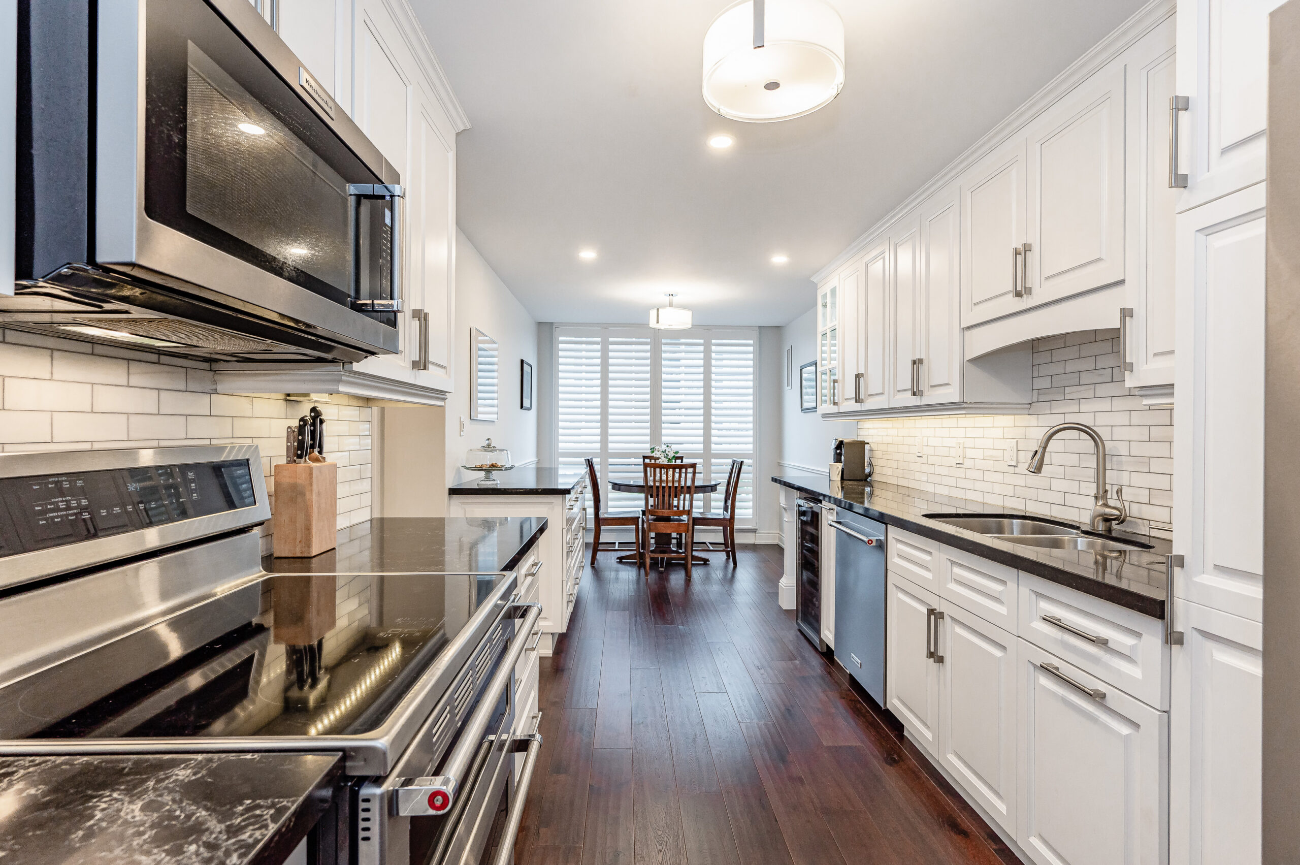 Absolutely gorgeous, renovated two-bedroom luxury suite boasting 1830 square feet of upgraded living space with attention to detail throughout. This stylish spacious corner unit is filled with an abundance of natural daylight, presenting an eat-in kitchen, formal dining & living rooms, den, office, two bathrooms & laundry/storage room.