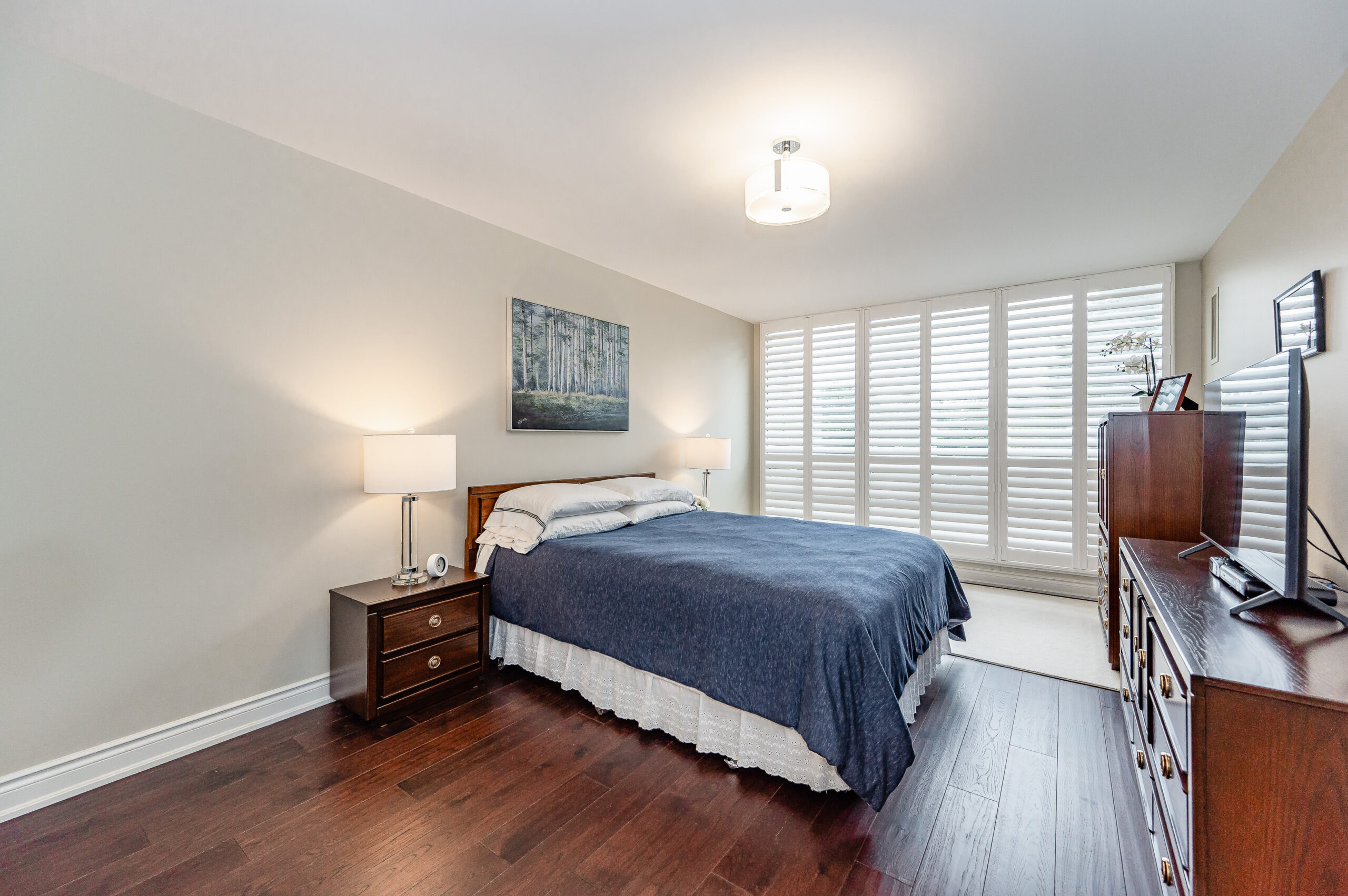 Outfitted with floor to ceiling windows, California shutters, crown moulding, hardwood floors, pot lights, quality light fixtures, custom millwork & so much more! The large inviting foyer with impressive tray ceiling leads to the spectacular gourmet kitchen featuring ample cabinetry, pull out drawers, quartz counters, backsplash, undercabinet lighting, stainless-steel appliances & breakfast room. Sophisticated dining room overlooking the formal living room hosting an electric fireplace & wall-to-wall windows, perfect for family gatherings & entertaining. The massive private primary bedroom retreat offers plentiful custom closets & stunning lavish 4-piece ensuite. Generous second bedroom with double door closets & fabulous spa like 3-piece main bathroom. The handy cozy den, desirable home office (was the solarium) & sizeable laundry/storage room complete this fabulous home. One owned underground parking space & exclusive use locker.