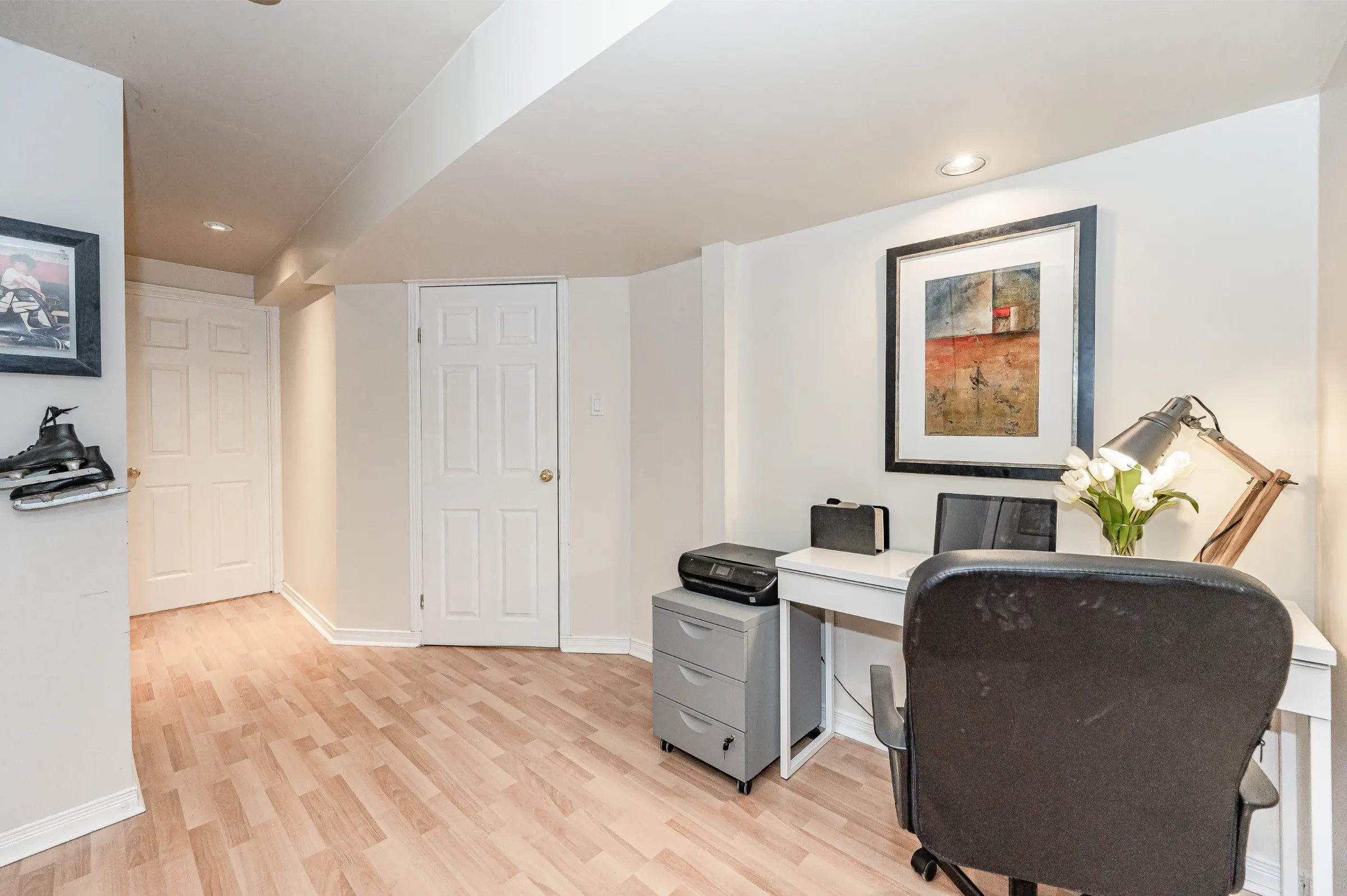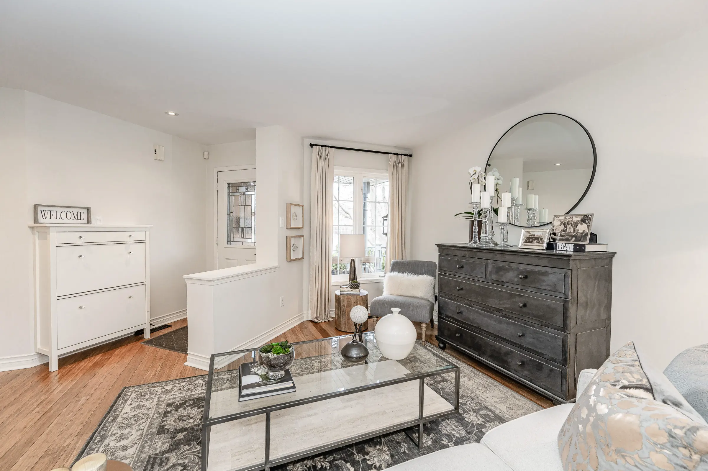 Fabulous sun-filled family home beautifully finished in the sought after Millcroft neighbourhood. This three bedroom freehold end unit townhouse is nestled on a private fenced lot with quaint front porch, lovely gardens, large backyard & double car garage. Well designed open concept updated home offering 1969 square feet plus finished basement with neutral decor. Featuring large windows allowing an abundance of natural daylight, hardwood floors, pot lights, smooth ceilings, quality light fixtures & much more.