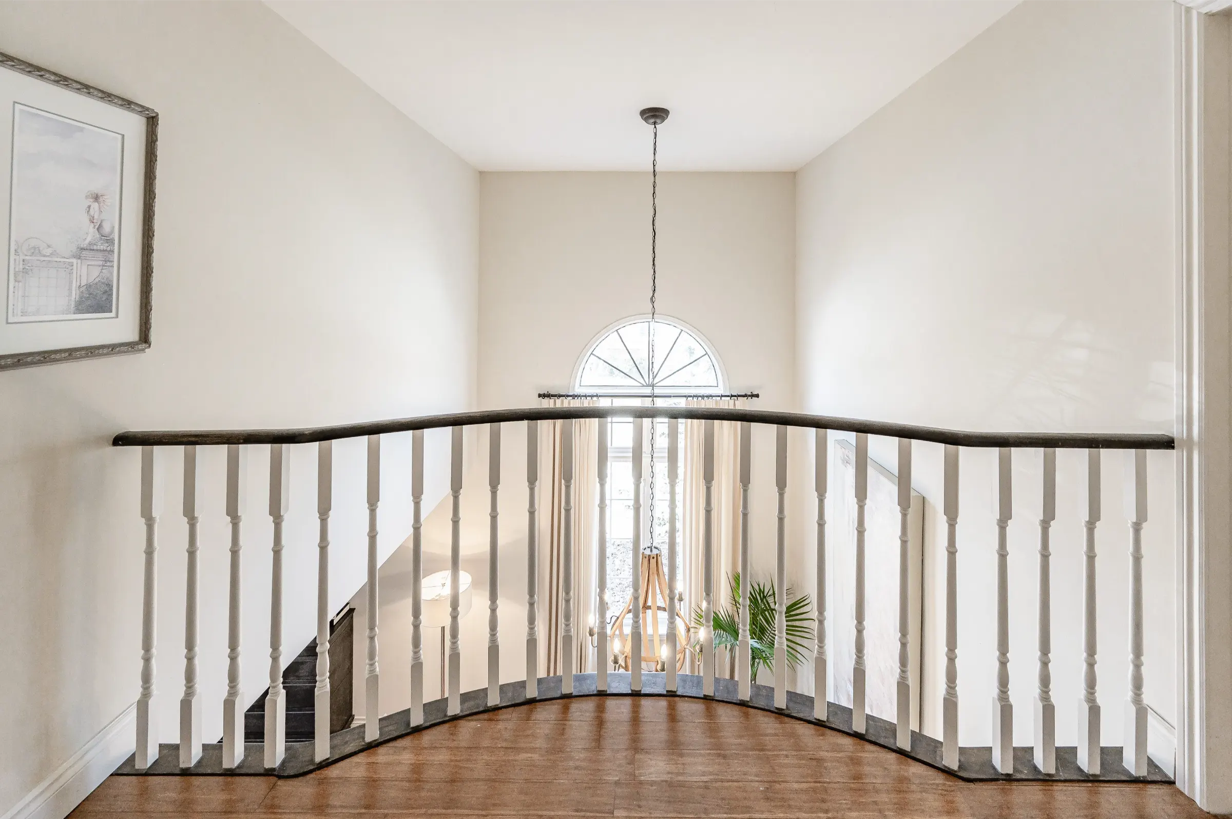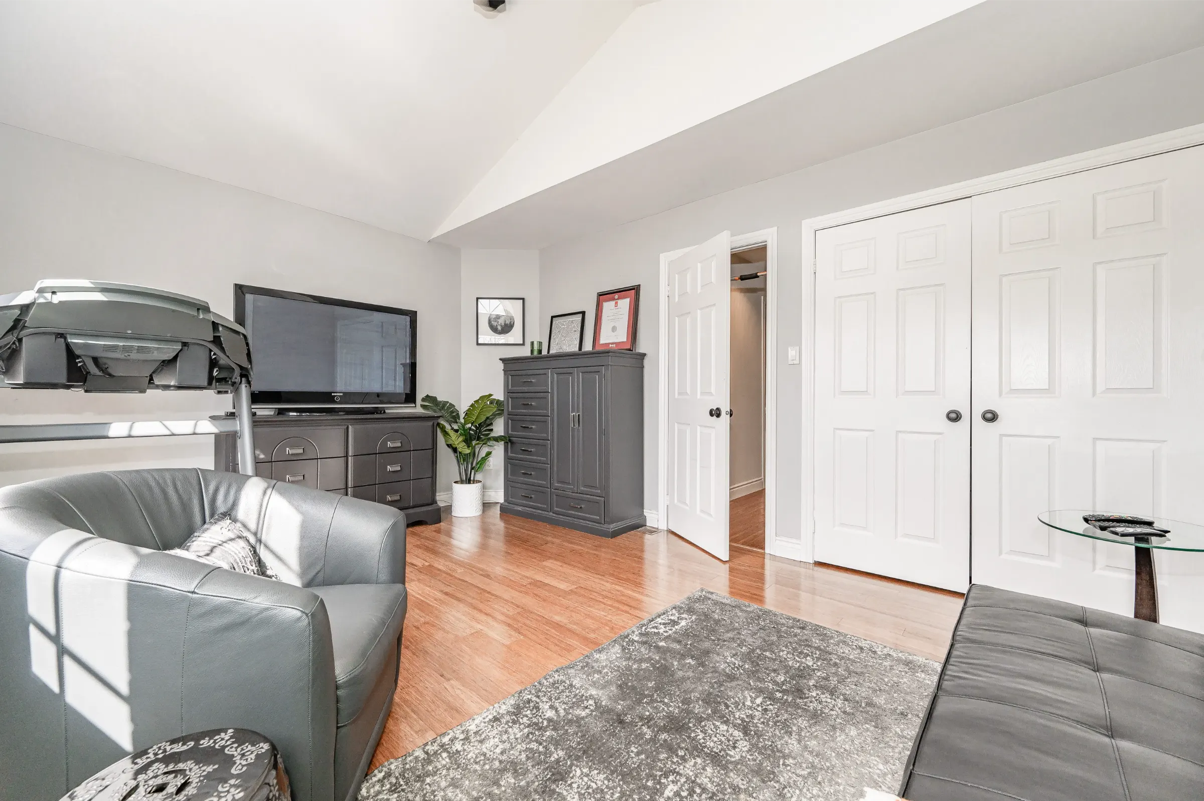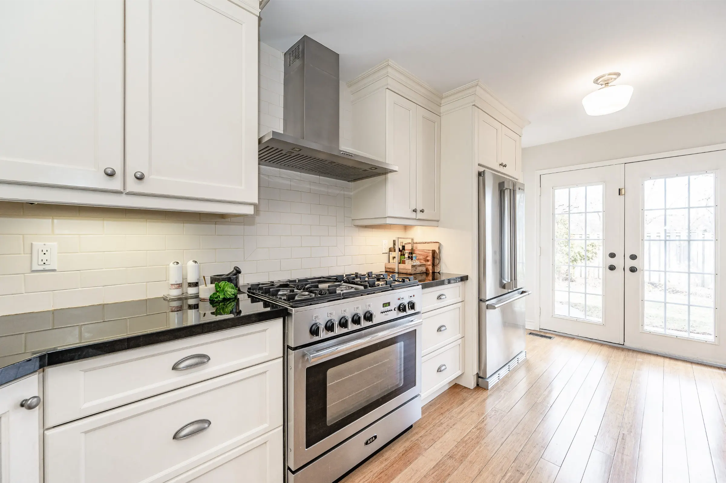 The inviting bright foyer opens to the entertainment sized formal living room overlooking the dining room boasting a vaulted ceiling & magnificent Palladine arched window. Gorgeous chef inspired kitchen features a well-crafted exposed beam & custom Cabico birch lined, soft close cabinetry with dovetail drawers. Equipped with high end stainless-steel appliances, back splash, granite counters & massive peninsula with breakfast bar. The double glass door walkout leads to the sunny backyard with large stone patio, pergola, gas hook up for bbq & lots of room for play area. Adjoining family room provides plentiful windows & a gas fireplace with stylish mantel surround. Convenient 2-piece powder room, laundry room & inside entry to garage.