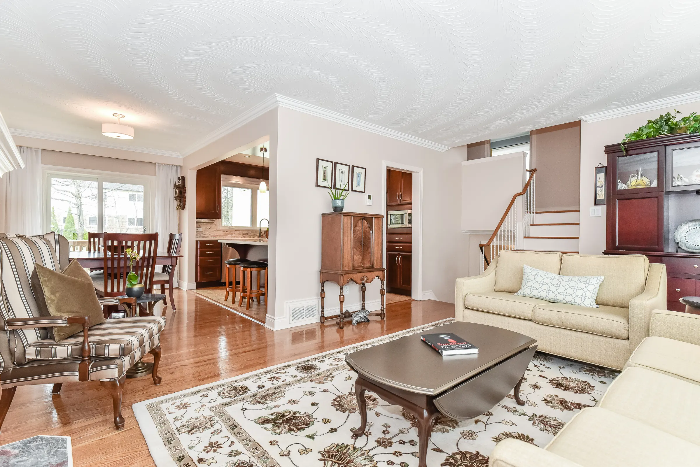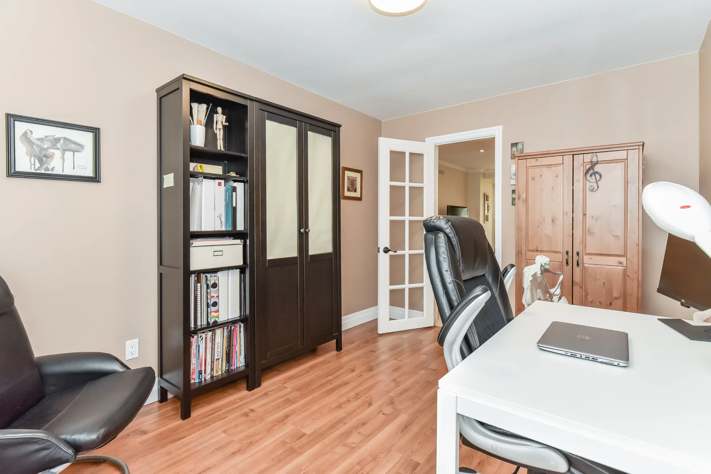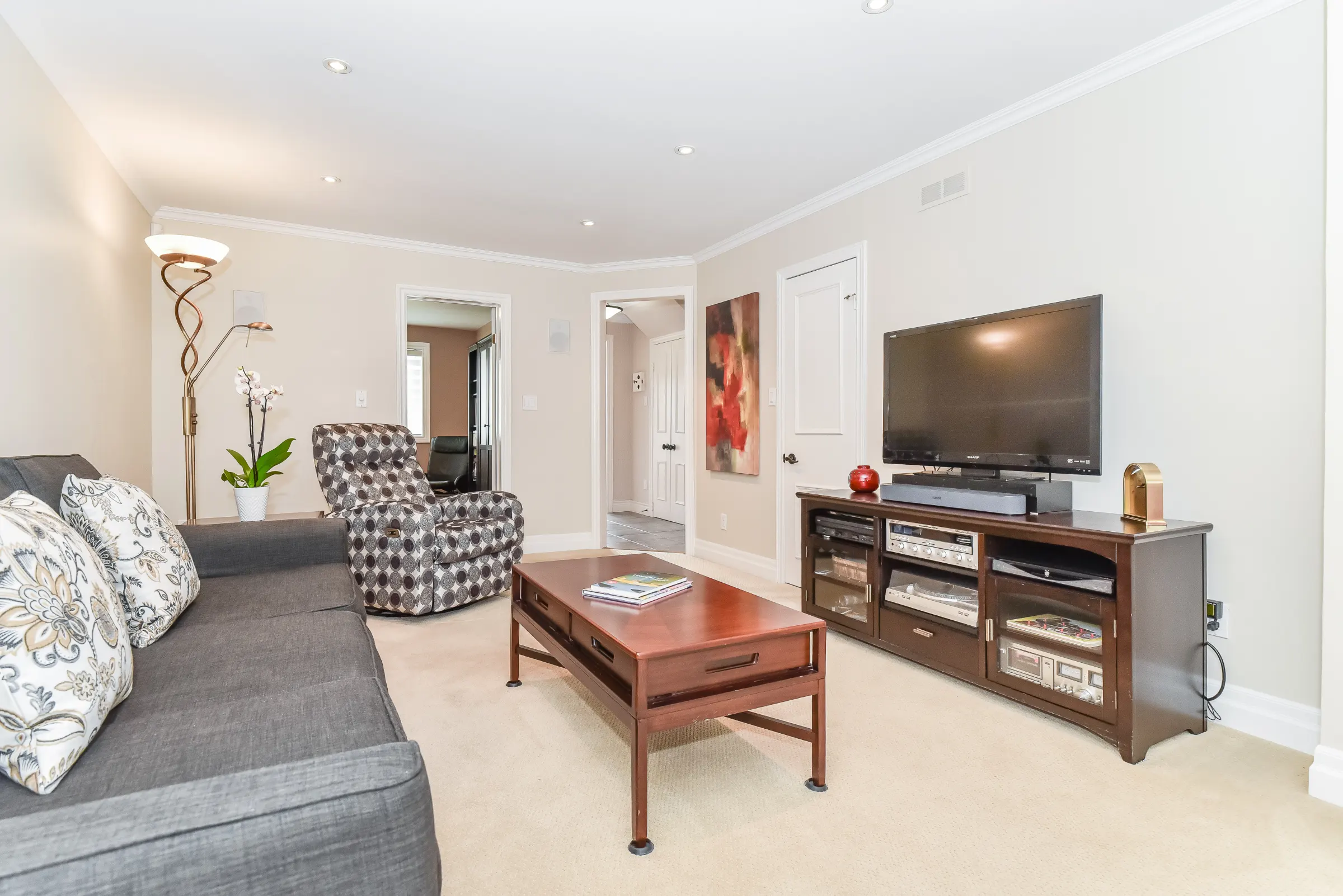 This perfect family home with addition features a stunning open concept chef inspired custom kitchen with quartz counters, island with pendant lighting, stainless steel appliances, cork flooring and well planned cabinets and drawers, overlooking the dining room with crown moulding and hardwood floors and walkout to the amazing pool sized back yard. The entertainment size living room boasts crown moulding, hardwood floors, large windows and gas fireplace. The spacious master retreat has large windows and good-sized closet with closet organizers and upgraded lavish 3-piece ensuite with glass walk-in shower. Two generous bedrooms with hardwood floors, 4-piece main bathroom and two linen closets complete the upper level. The main level hosts a massive family room with gas fireplace, built-in bookcase, large windows, smooth ceilings, pot lights and walk out to the rear yard and contains a bedroom with smooth ceilings, large window with blind and laminate floor (being used as an office) and 3-piece bath. (Was originally an in-law suite and can be converted back). The basement offers a large multipurpose room with ample storage, laundry and workshop.
