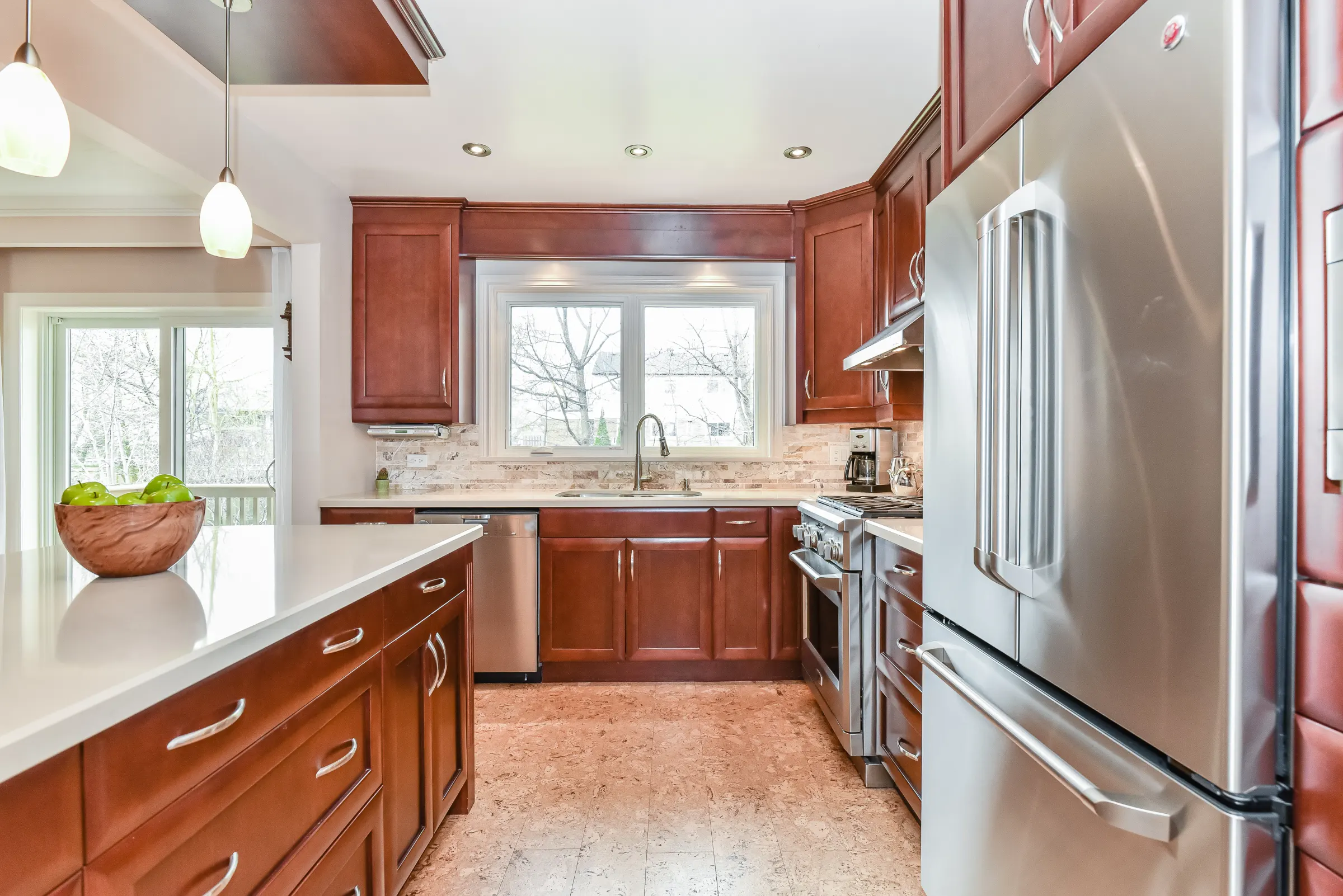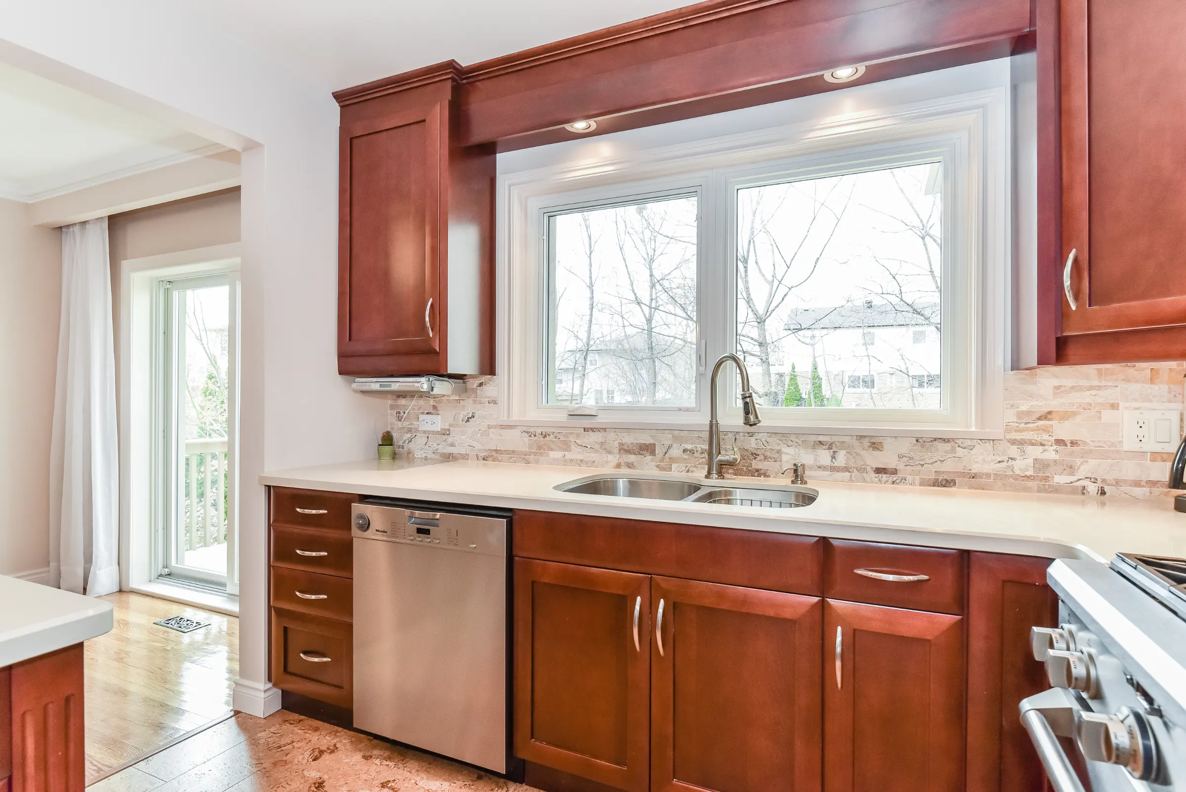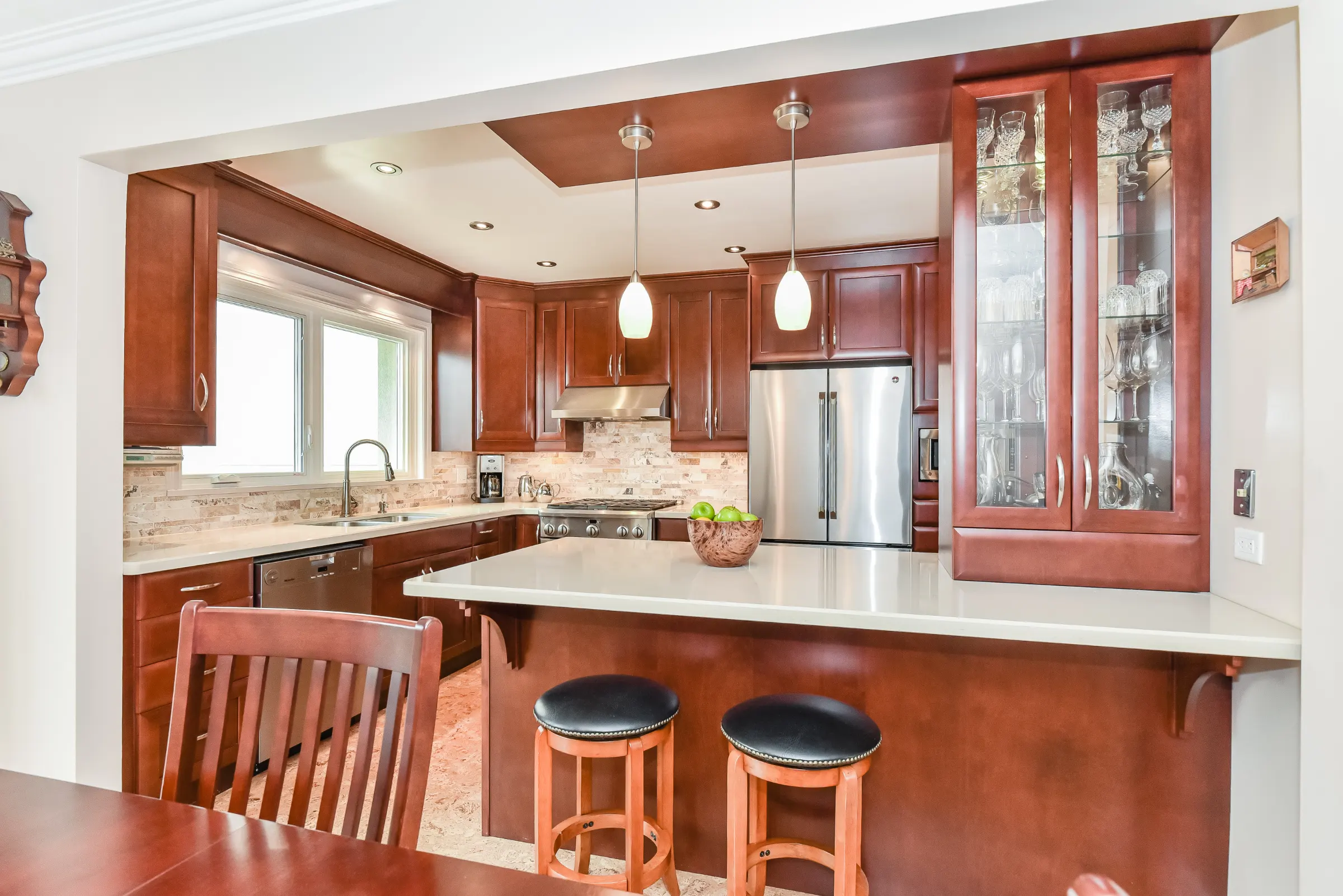 This perfect family home with addition features a stunning open concept chef inspired custom kitchen with quartz counters, island with pendant lighting, stainless steel appliances, cork flooring and well planned cabinets and drawers, overlooking the dining room with crown moulding and hardwood floors and walkout to the amazing pool sized back yard. The entertainment size living room boasts crown moulding, hardwood floors, large windows and gas fireplace. The spacious master retreat has large windows and good-sized closet with closet organizers and upgraded lavish 3-piece ensuite with glass walk-in shower. Two generous bedrooms with hardwood floors, 4-piece main bathroom and two linen closets complete the upper level. The main level hosts a massive family room with gas fireplace, built-in bookcase, large windows, smooth ceilings, pot lights and walk out to the rear yard and contains a bedroom with smooth ceilings, large window with blind and laminate floor (being used as an office) and 3-piece bath. (Was originally an in-law suite and can be converted back). The basement offers a large multipurpose room with ample storage, laundry and workshop.