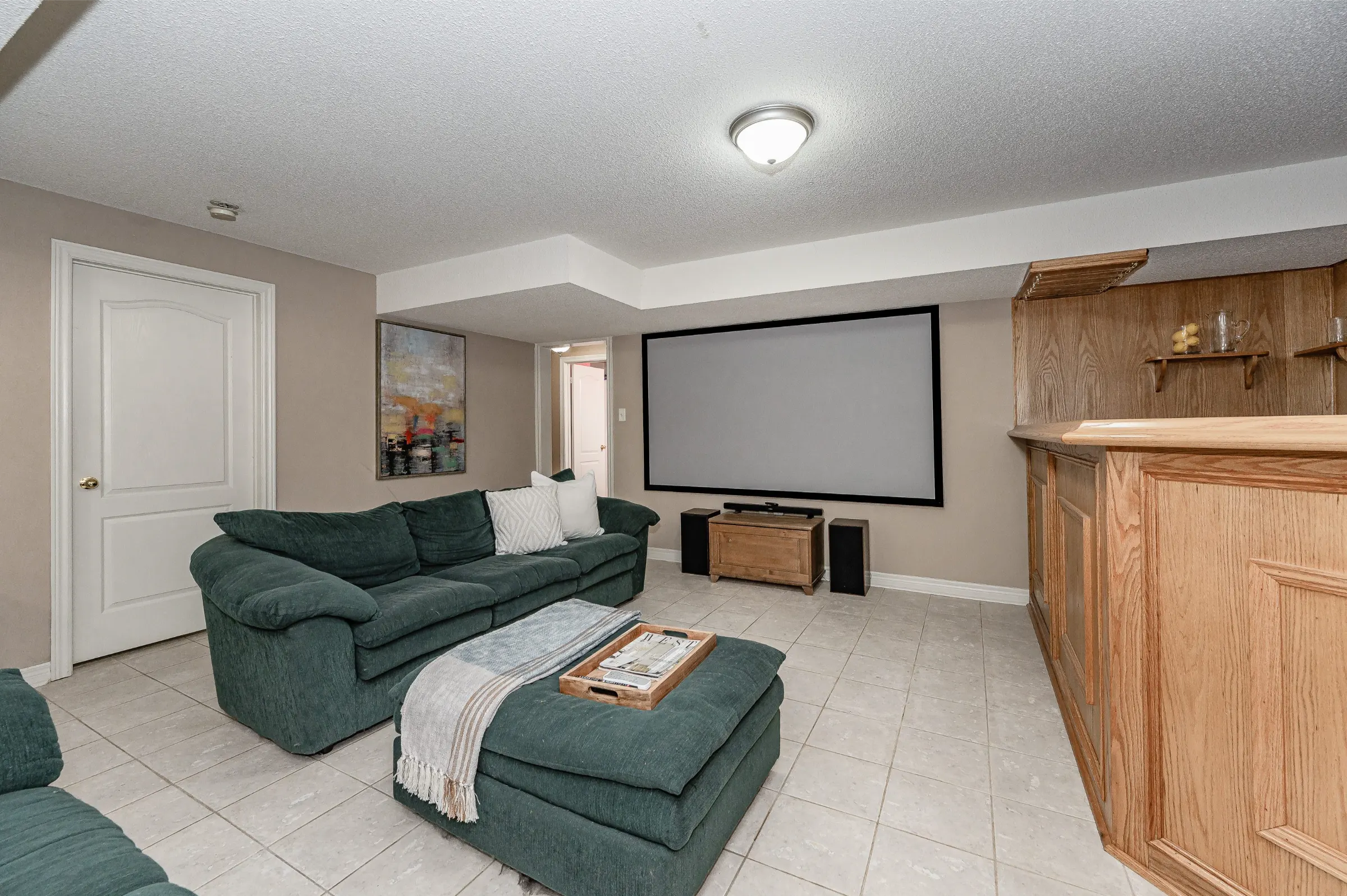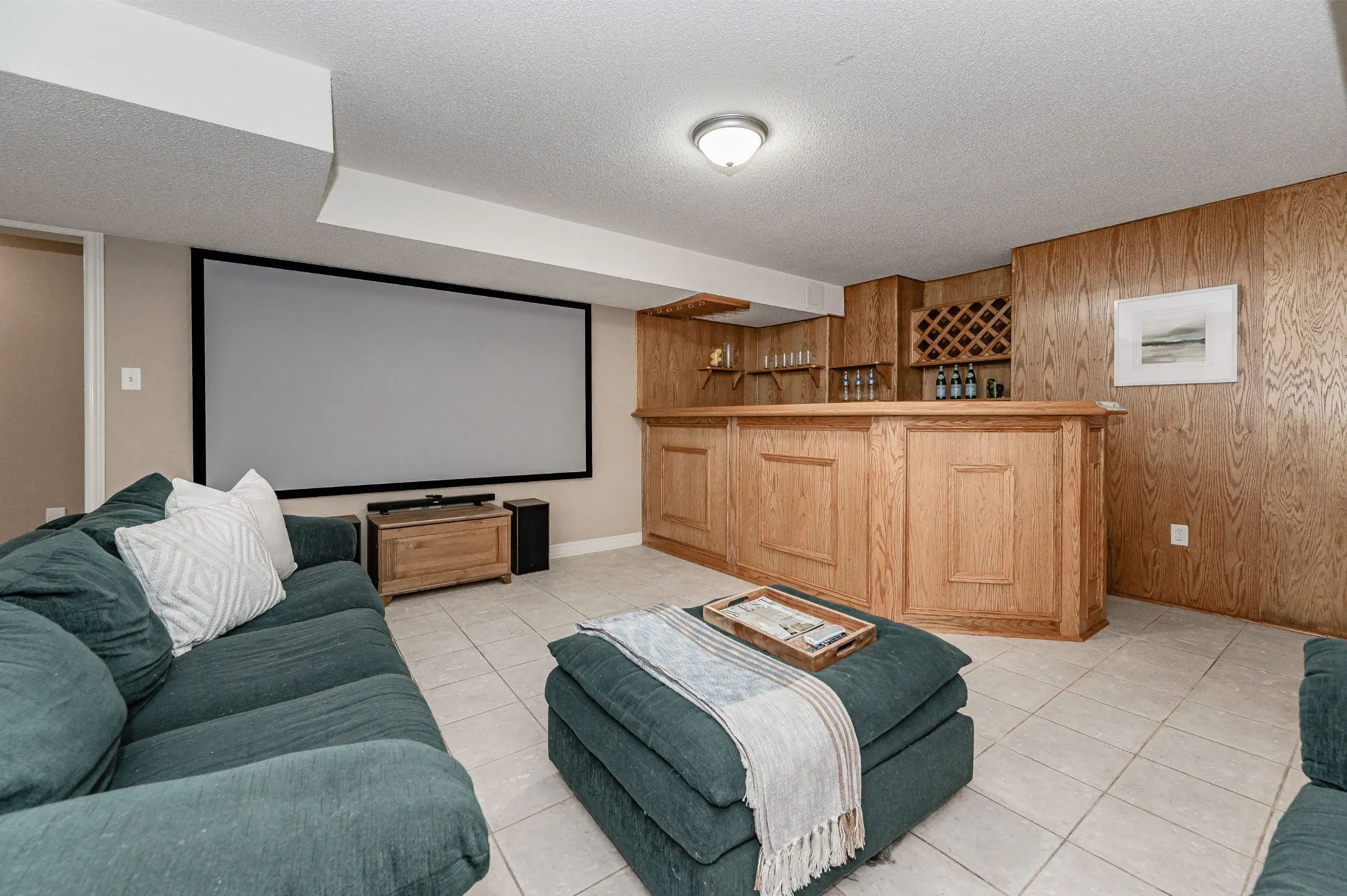 The finished lower level hosts a massive recreation room with custom built-in bar and cabinetry. Two additional good-sized bedrooms, 4-piece bathroom and lots of room for storage. Handsome exterior façade with impressive curb appeal offering double door entry with side lights and transom window, double car garage and patterned concrete driveway.