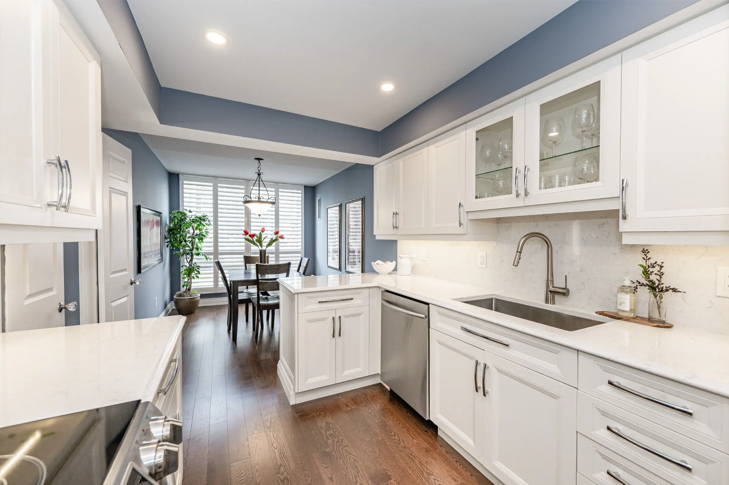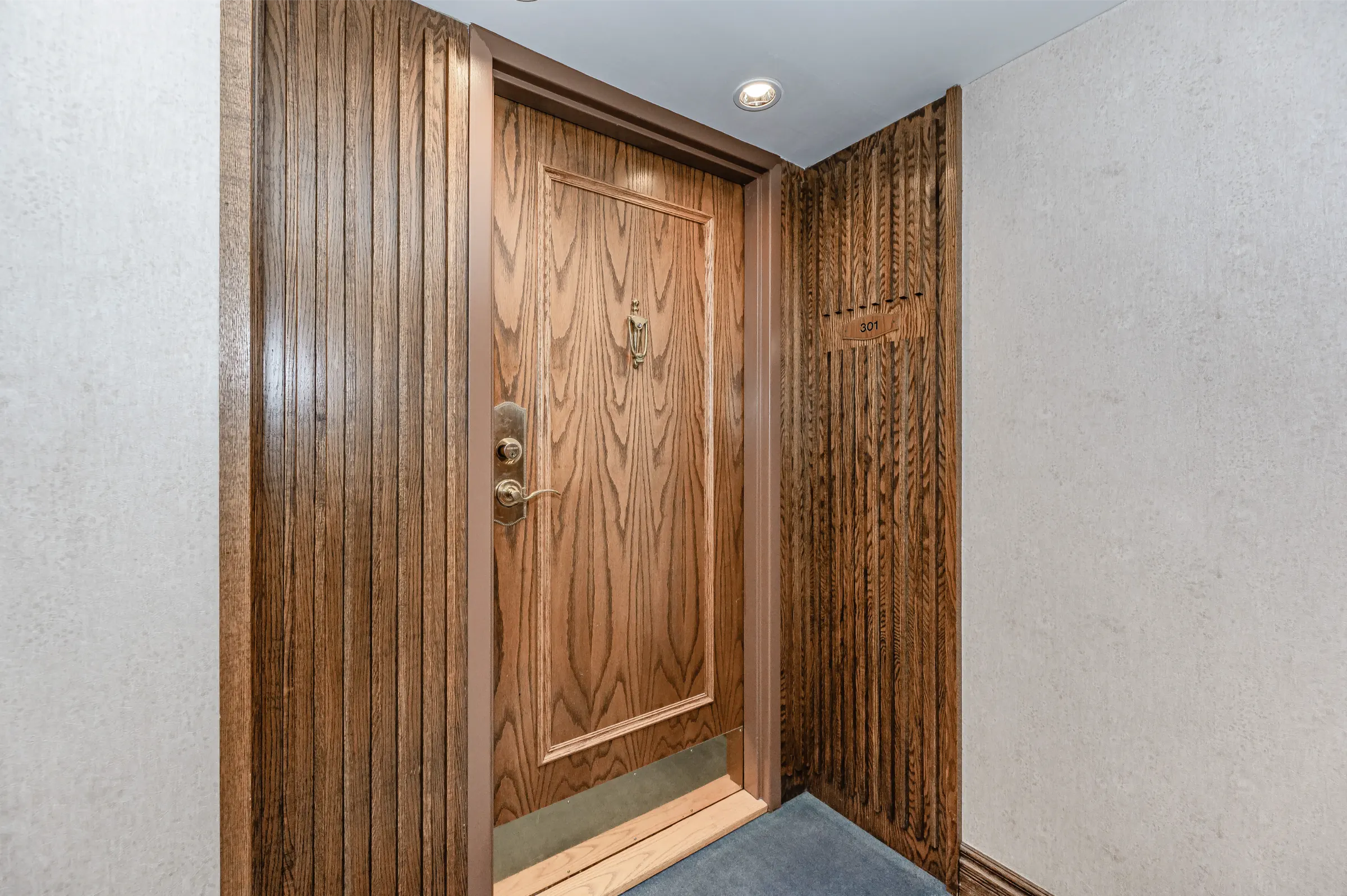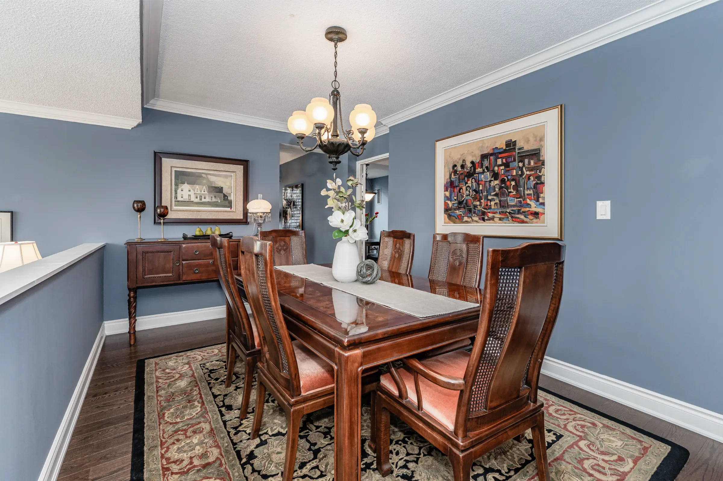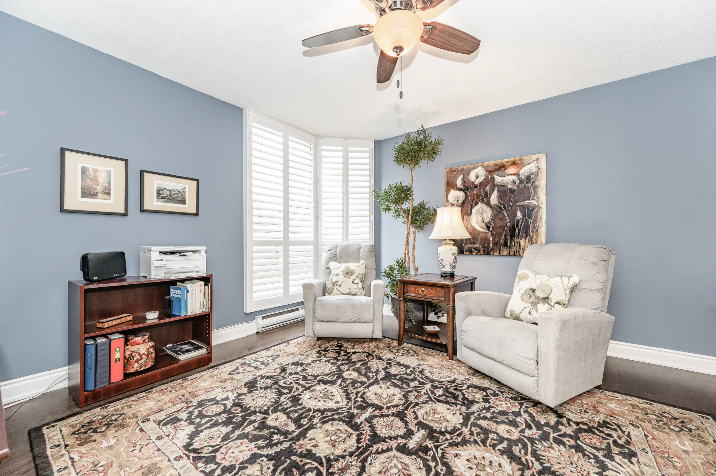 Spectacular renovated 2-bedroom suite boasting 1830 square feet offering luxurious upgrades with attention to detail throughout. Stylish spacious corner unit filled with an abundance of natural daylight featuring an eat-in kitchen, formal dining & living rooms, den, office, 2 bathrooms & laundry/storage room. Outfitted with floor to ceiling windows, California shutters, crown moulding, hardwood floors, upgraded baseboards, pot lights, quality light fixtures, ceiling fans, custom drapery & much more!