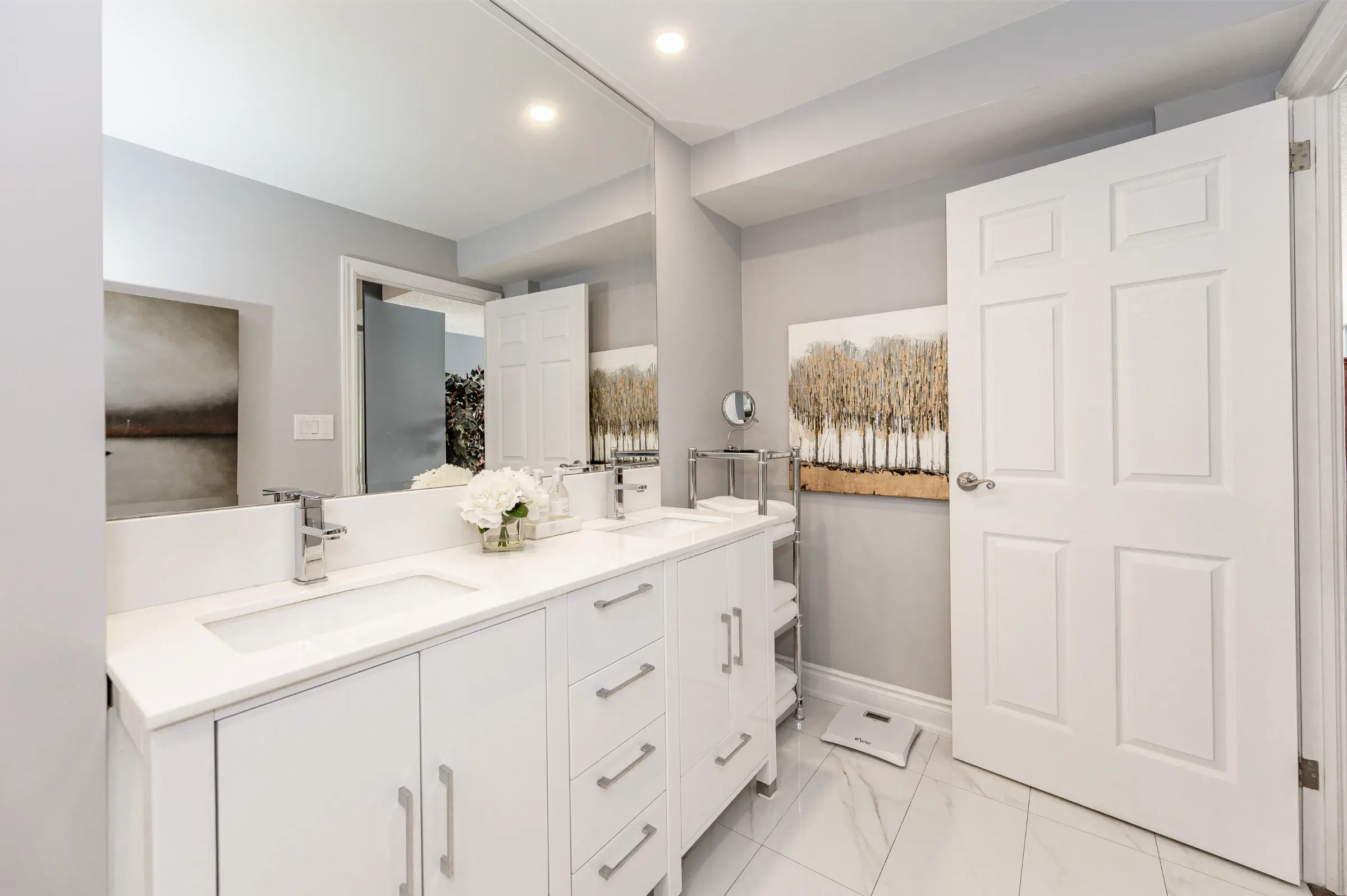Large inviting foyer with beautiful marble floor leads to the spectacular custom chef inspired kitchen featuring ample white cabinetry, pull out drawers, glass door cabinet, quartz counters & backsplash, undercabinet lighting, stainless-steel appliances, bifold doors & breakfast room. Sophisticated dining room overlooking the formal living room with wall-to-wall windows, perfect for family gatherings and entertaining.