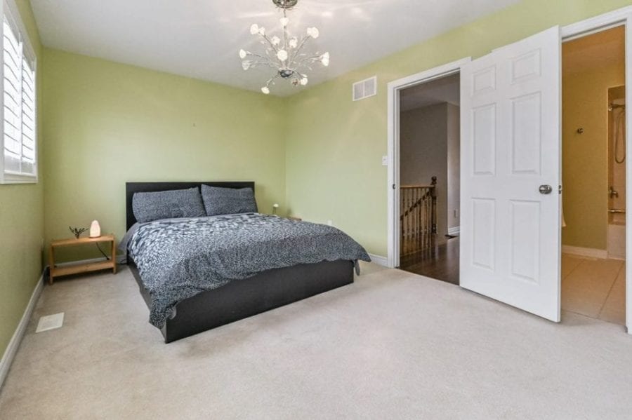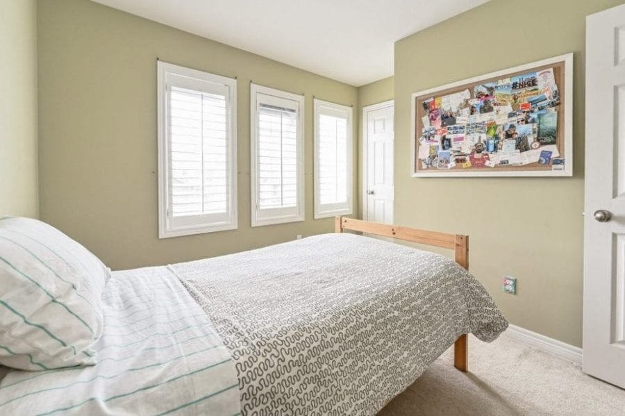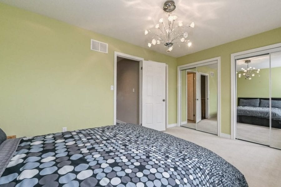 Beautiful upgraded hardwood staircase leads to the upper level offering a spacious master retreat with double closets with mirrored sliding doors, upgraded light fixture, large windows with California shutters and private 4-piece ensuite bathroom. Two additional good-sized bedrooms with broadloom, closets and California shutters, linen closet and convenient 4-piece main bathroom.