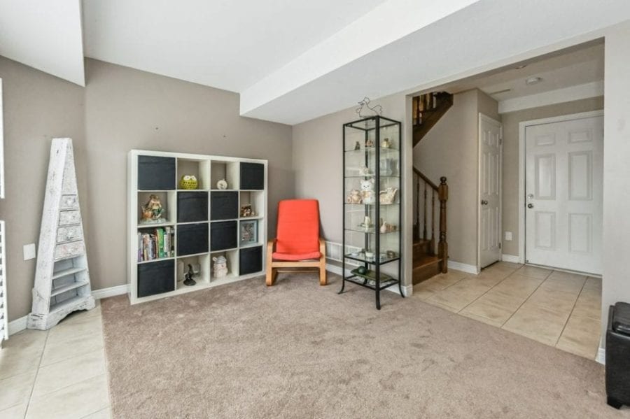 Sun-filled generous recreation room on the main level with California shutters and glass sliding door walkout to the private back yard with patio. Laundry room with sink, central vac and convenient inside entry to the garage and ample storage area.