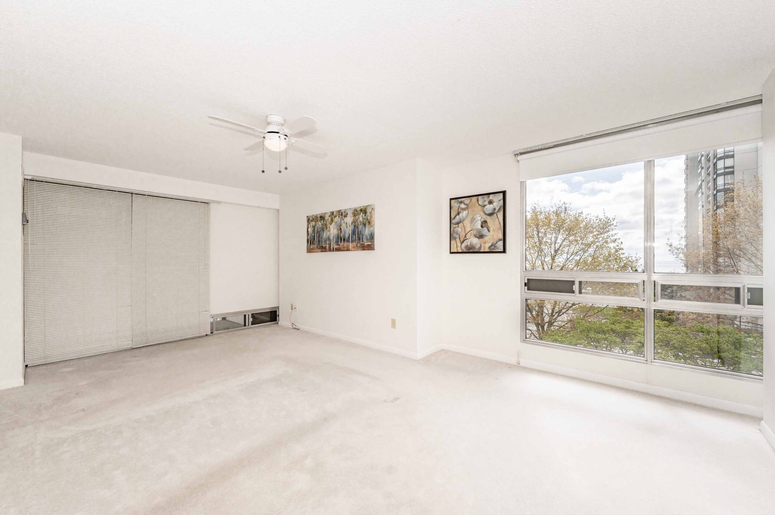 Impressive sized foyer with triple sliding closet doors leads into the well-designed layout with generous sized rooms. Large eat-in kitchen features ample cabinetry, breakfast bar and bifold doors.  Entertainment size dining room overlooking the formal living room boasting floor to ceiling windows and walk out to the balcony with tranquil views of Lake Ontario. Cozy private den with walk-out to the balcony.