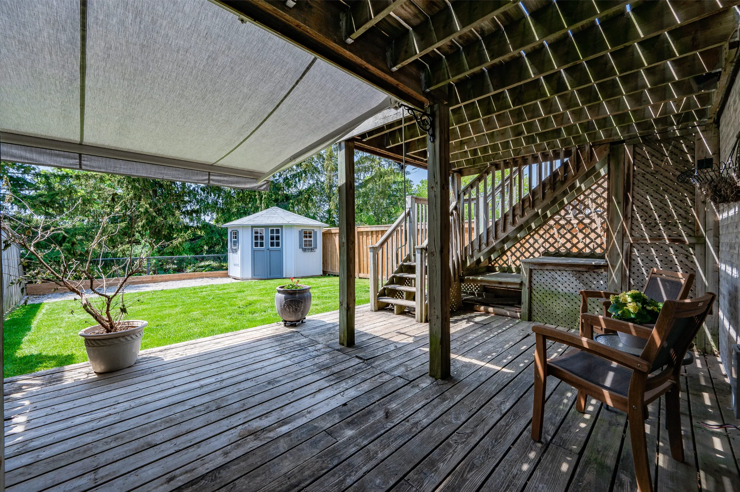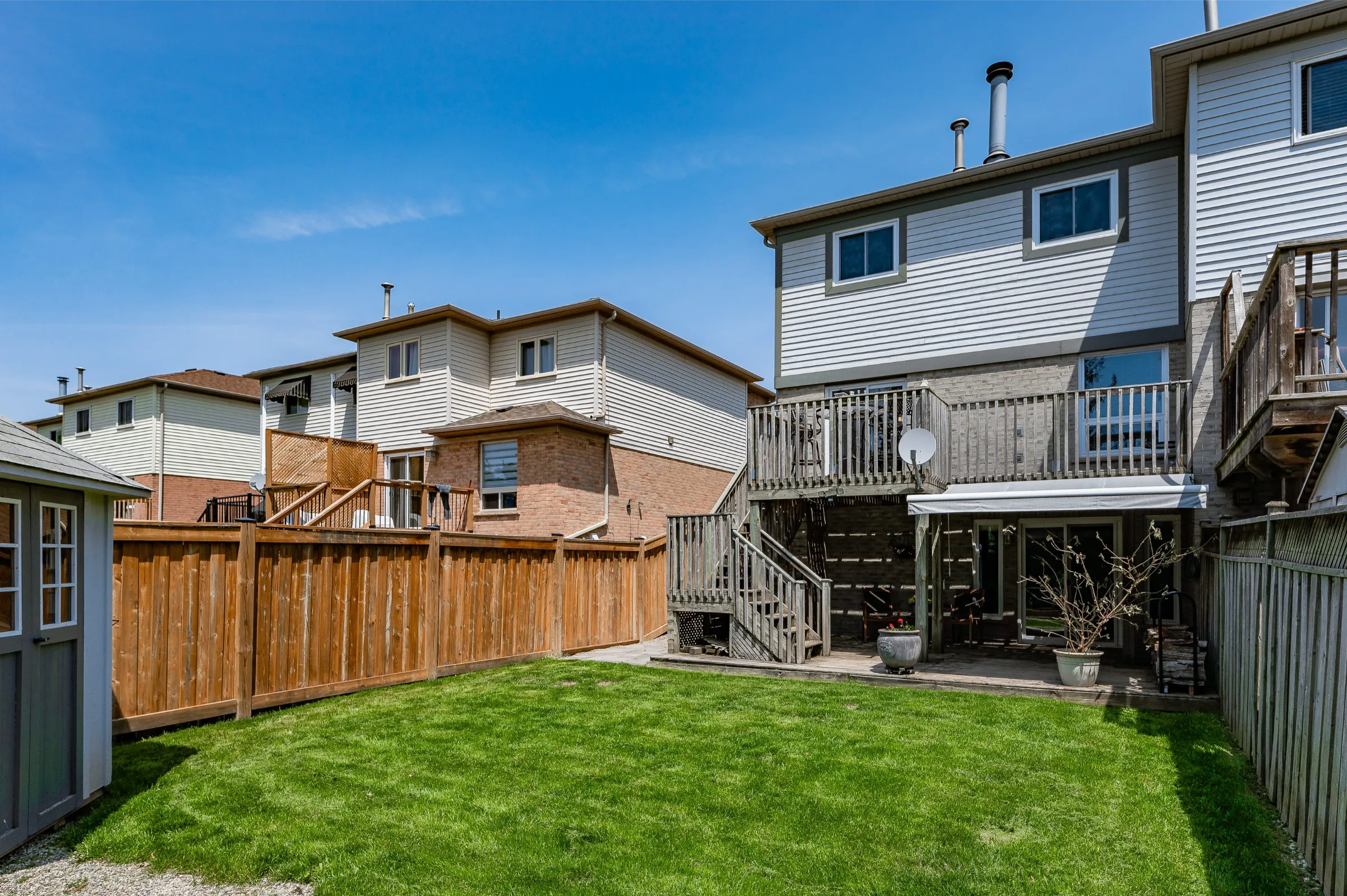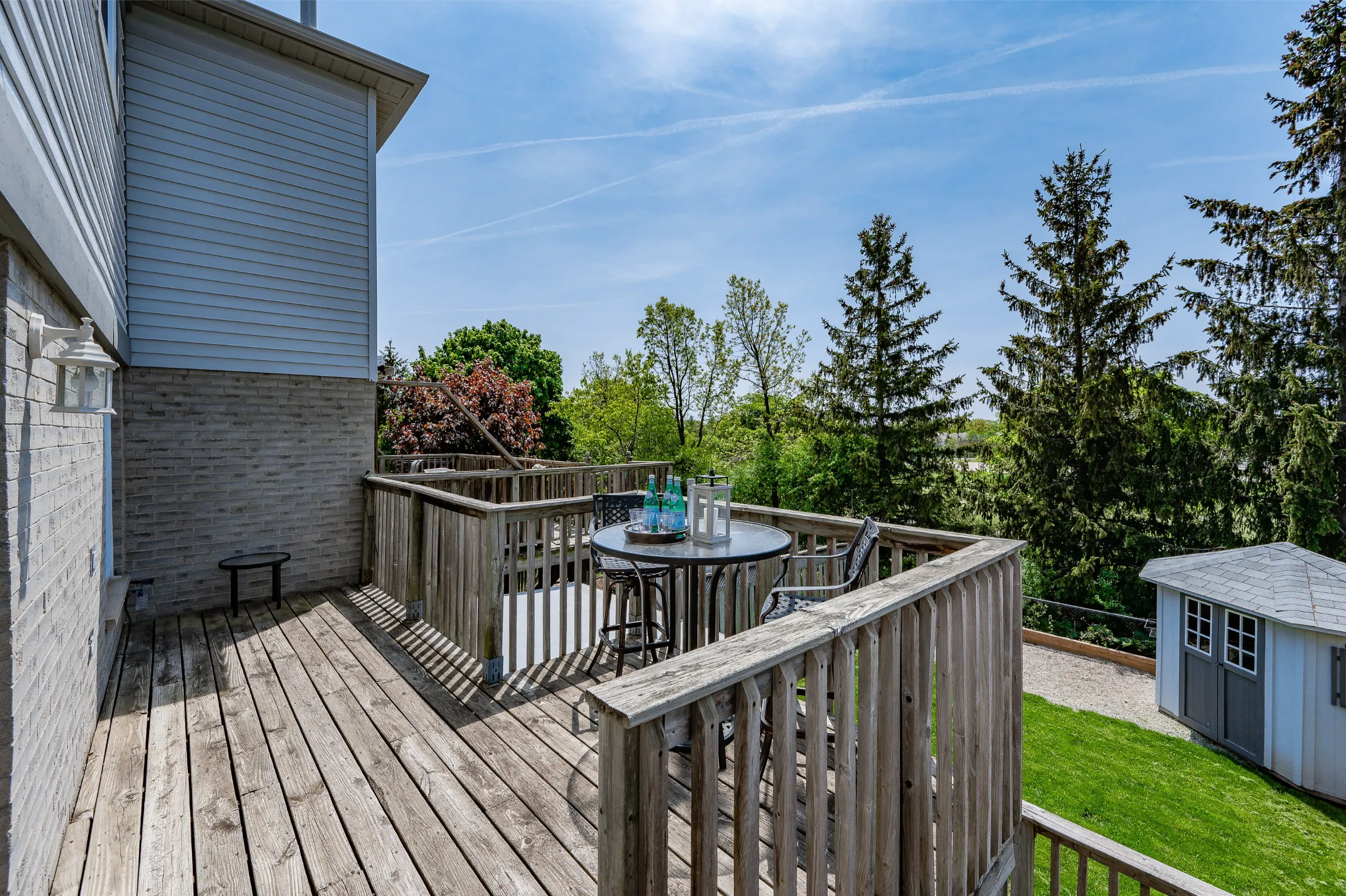 Tranquil fenced back yard get-away providing two large wood decks, retractable awning and garden shed. Enjoy the rare privacy, and neighboring walking trails outside your door. Conveniently located near parks, shopping, transit, great schools, rec centre, major highways and easy access to the Oakville GO train.