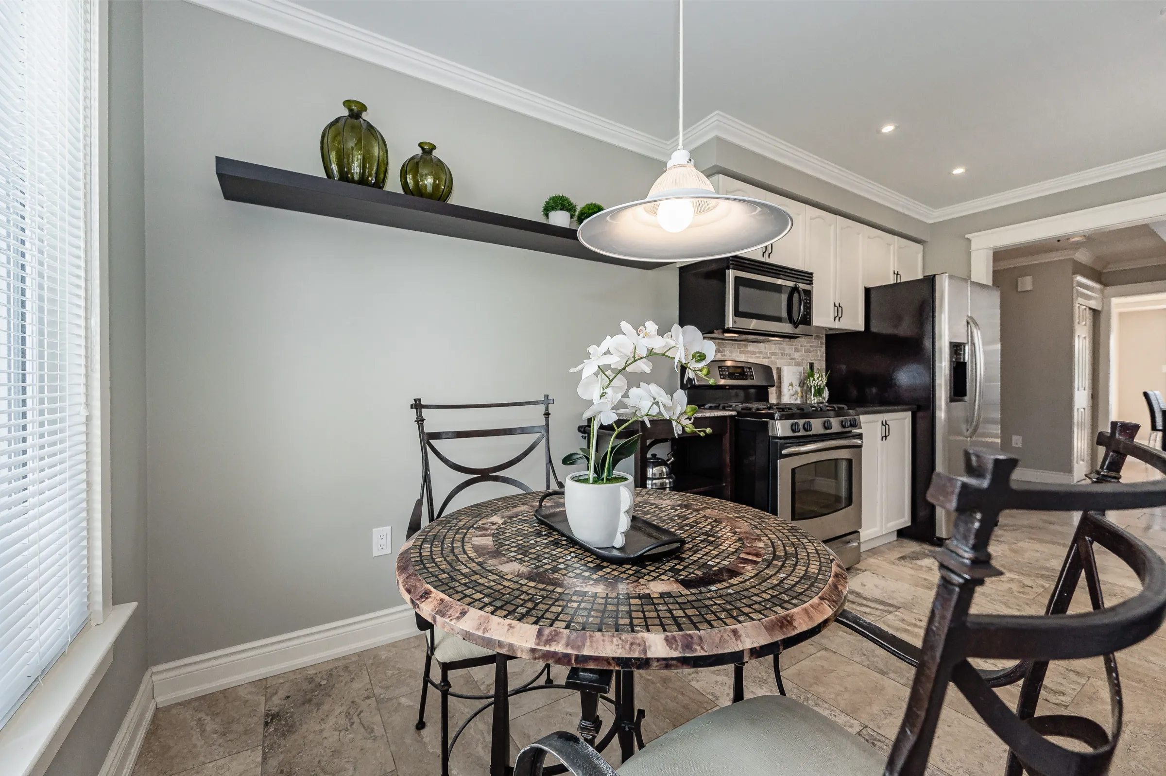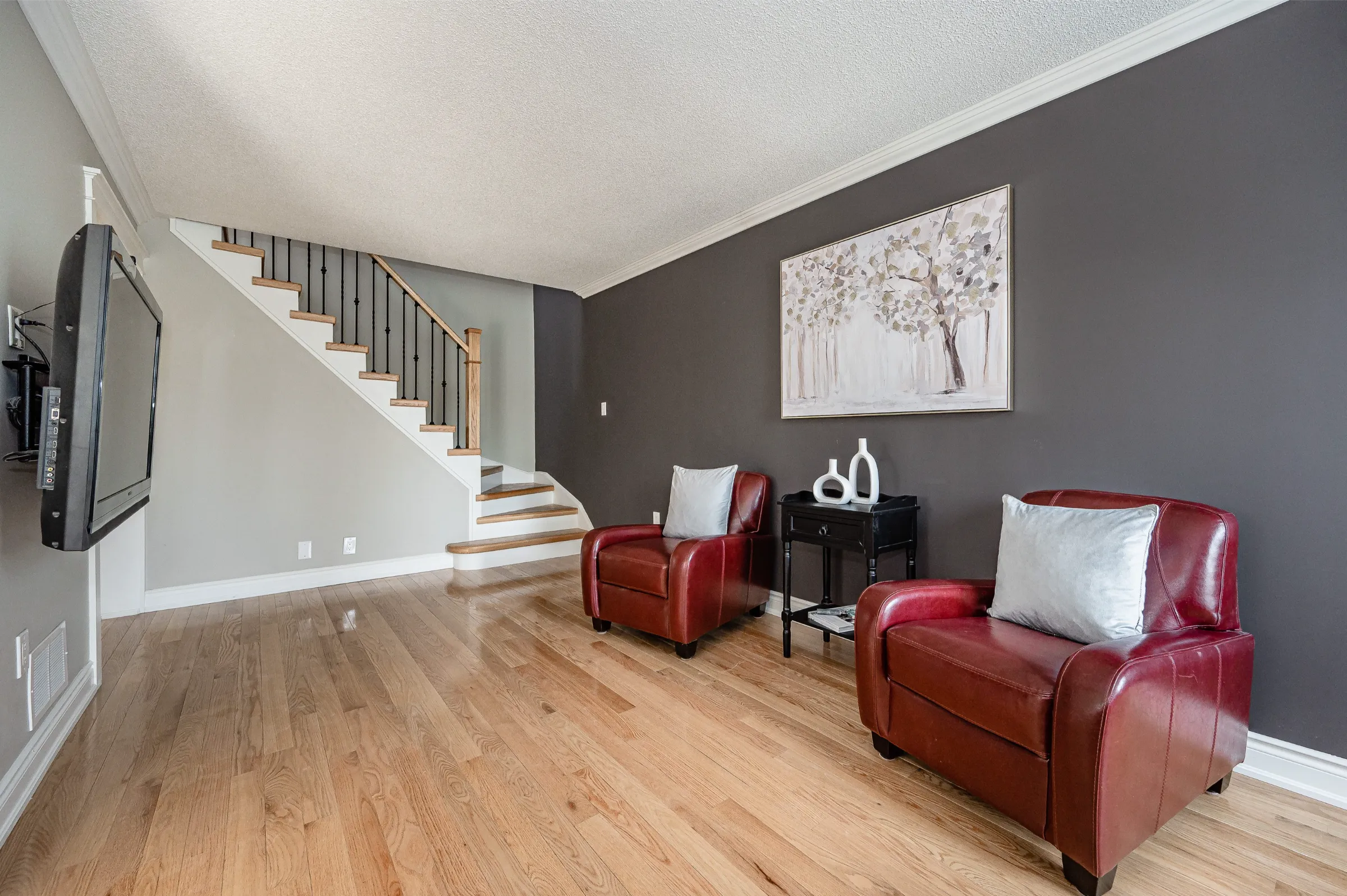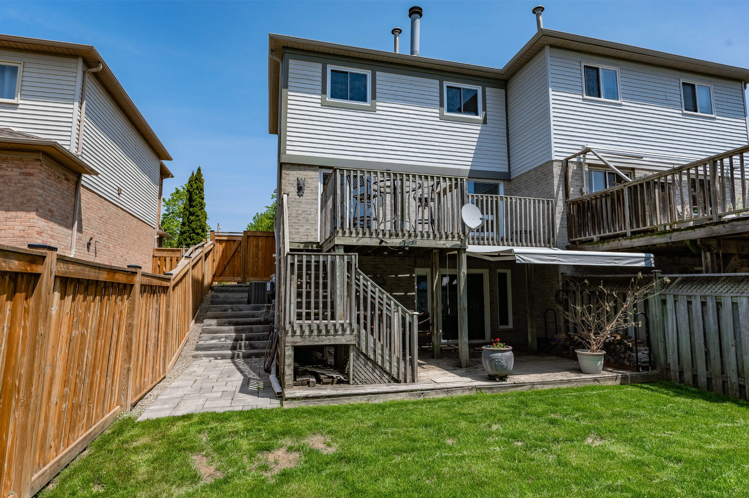 Tranquil fenced back yard get-away providing two large wood decks, retractable awning and garden shed. Enjoy the rare privacy, and neighboring walking trails outside your door. Conveniently located near parks, shopping, transit, great schools, rec centre, major highways and easy access to the Oakville GO train.