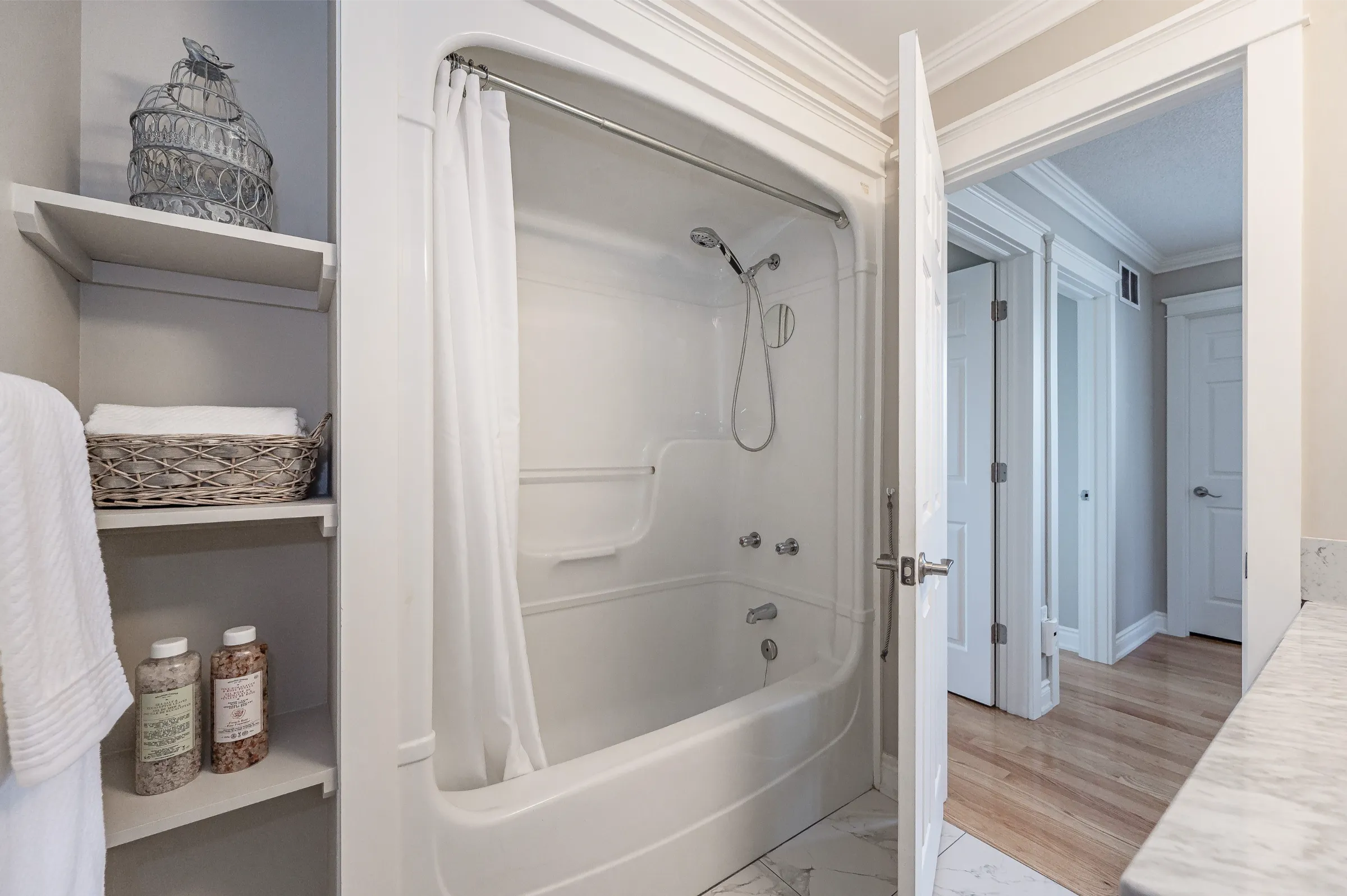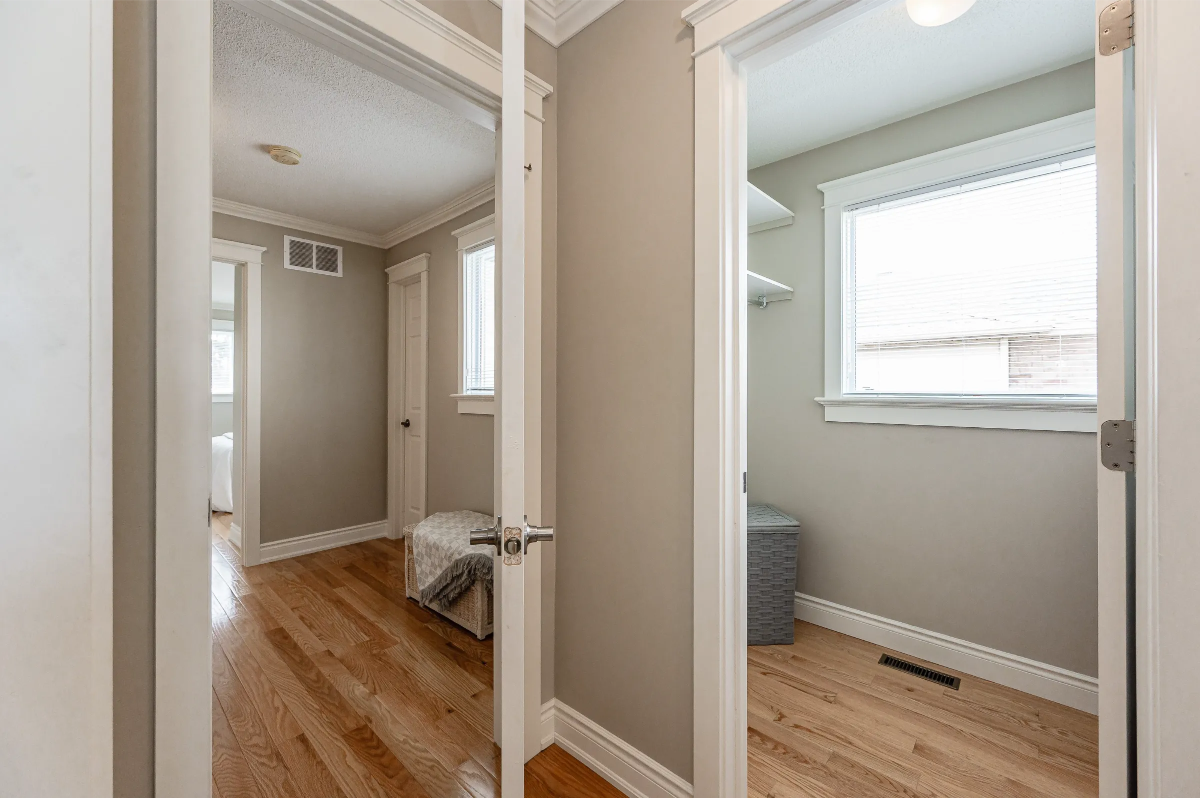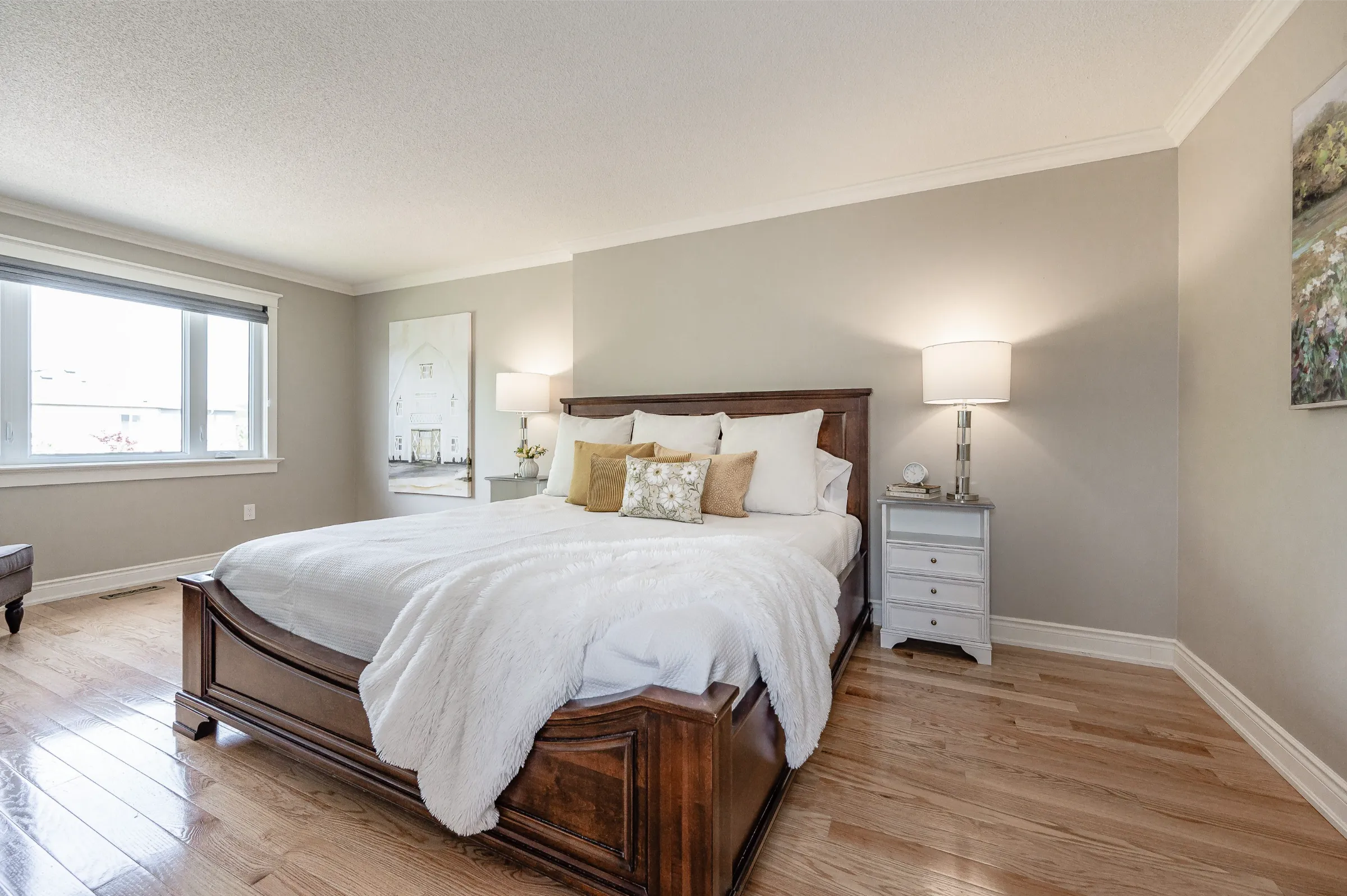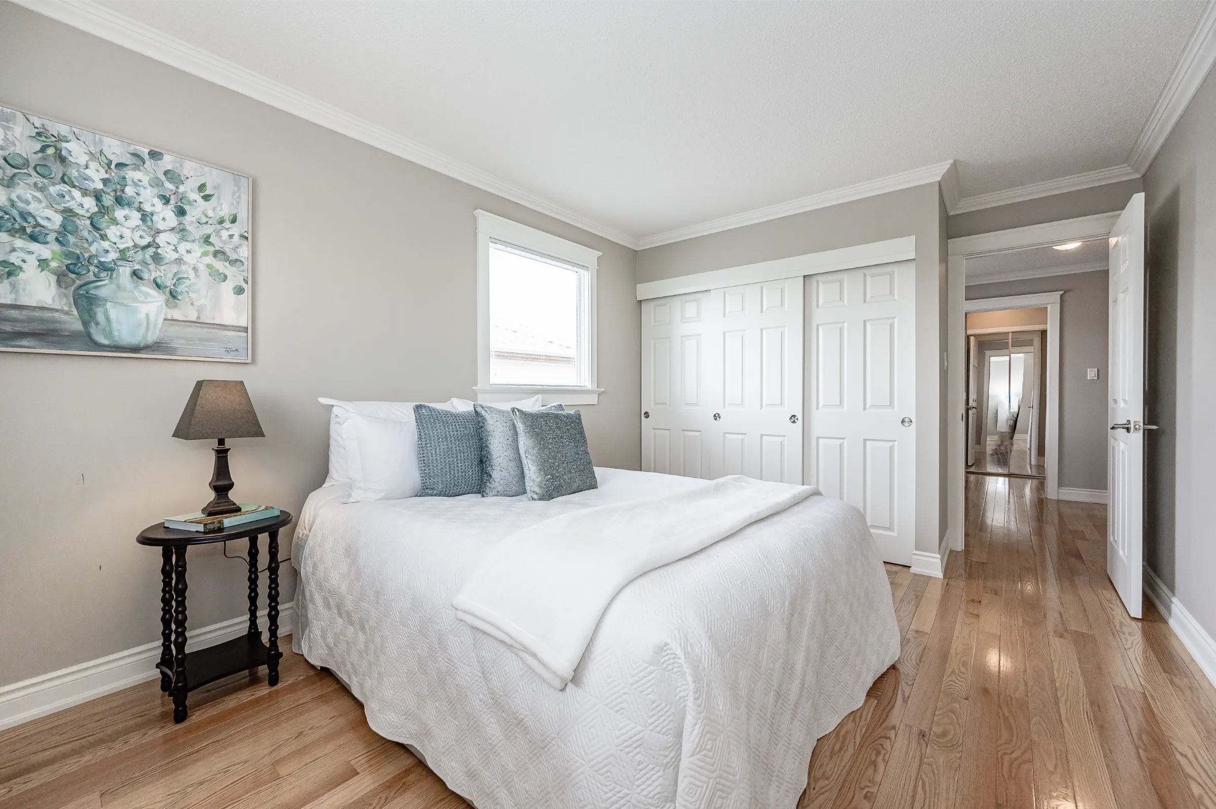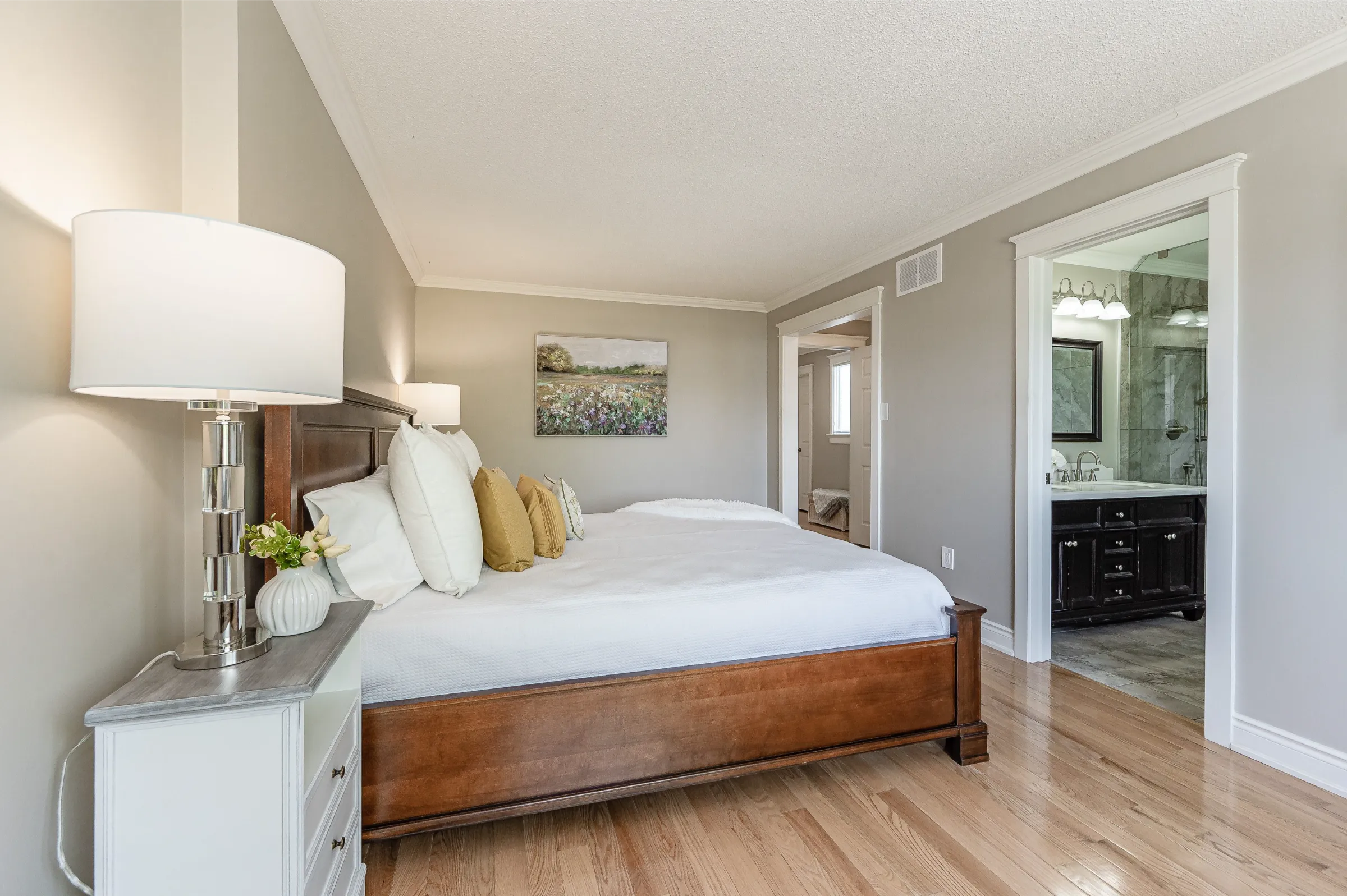 The beautiful upgraded wrought-iron staircase leads to the second level offering a spacious primary bedroom retreat with walk-in closet plus additional sliding door closet and large window allowing an abundance of natural daylight. Gorgeous spa inspired 4-piece ensuite outfitted with a double sink vanity, glass walk-in shower, heated towel rack and floor. Two additional generous bedrooms with large windows and good-sized closets. Stunning 4-piece bathroom hosting a tub/shower combination and built-in shelving. The unspoiled lower level offers ample possibilities for future renovation with a glass sliding door walkout to the private backyard.