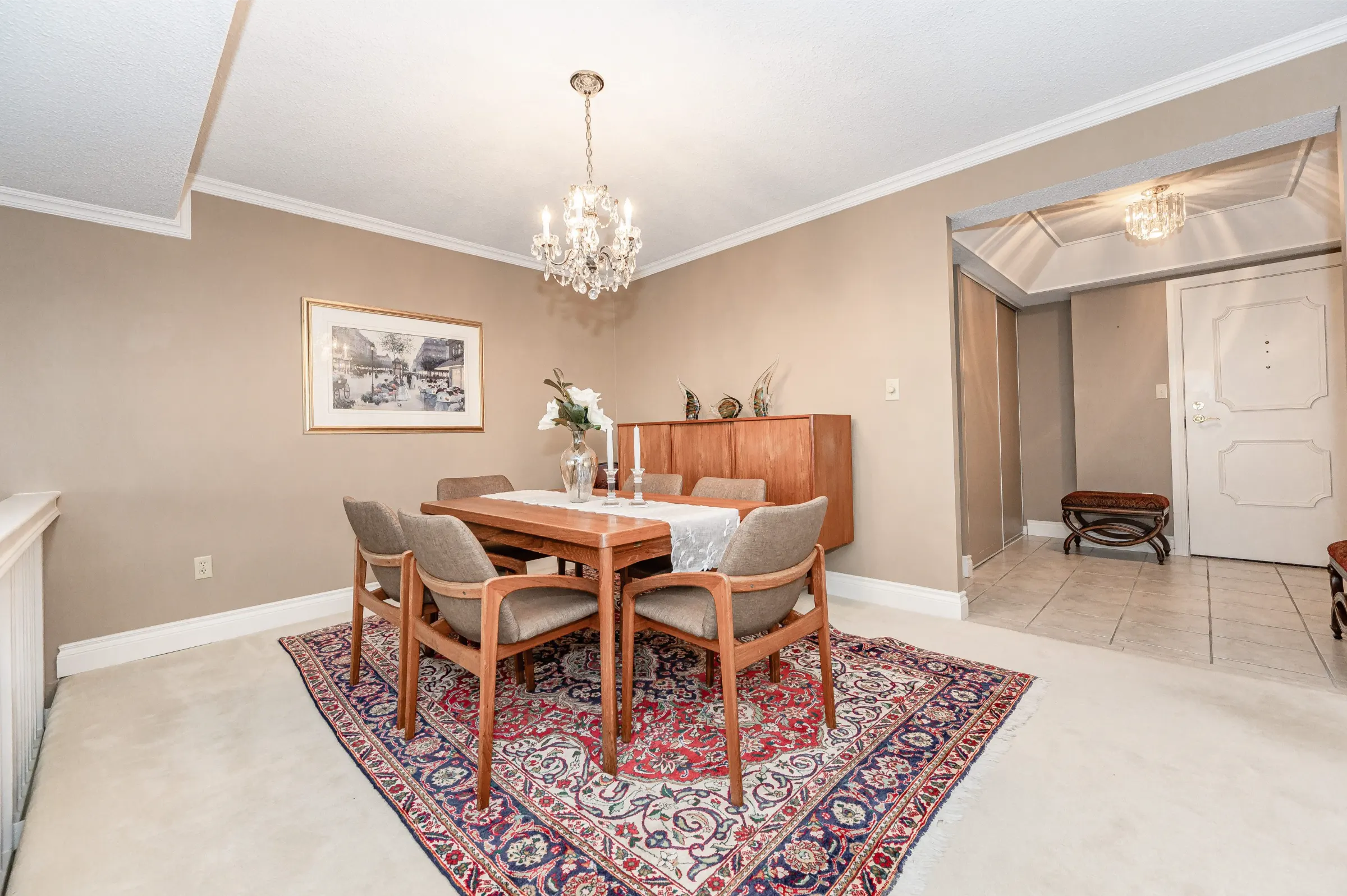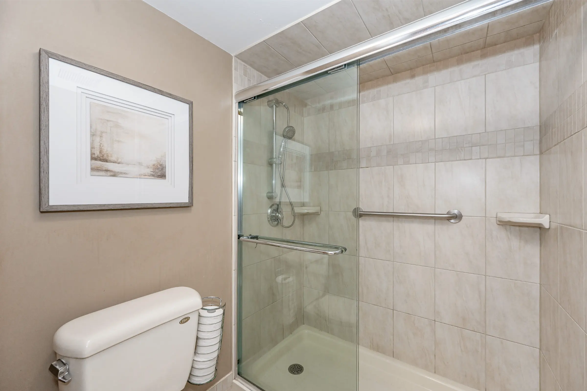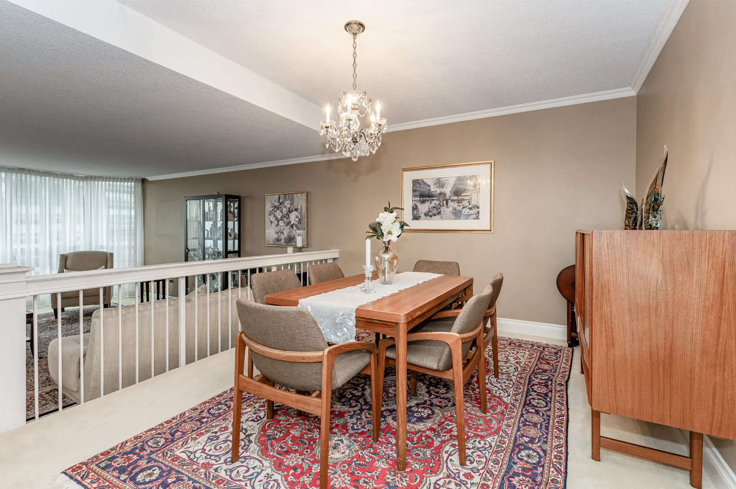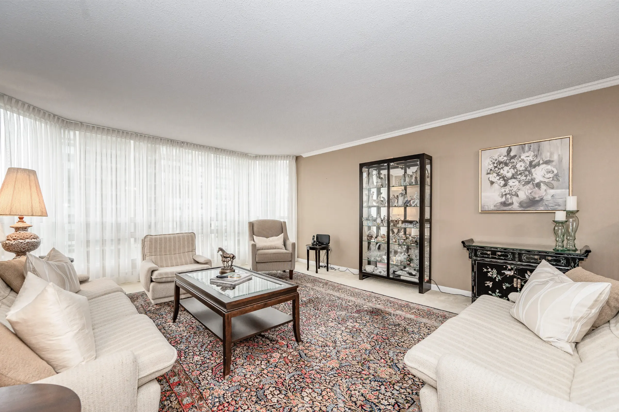 Generous master bedroom getaway with floor to ceiling windows, three sets of sliding closet doors providing plenty of storage & 3-piece ensuite with glass door walk-in shower. Large second bedroom & main 4-piece bathroom with tub/shower combination. Convenient in-suite laundry, linen closet & storage room complete this appealing home.