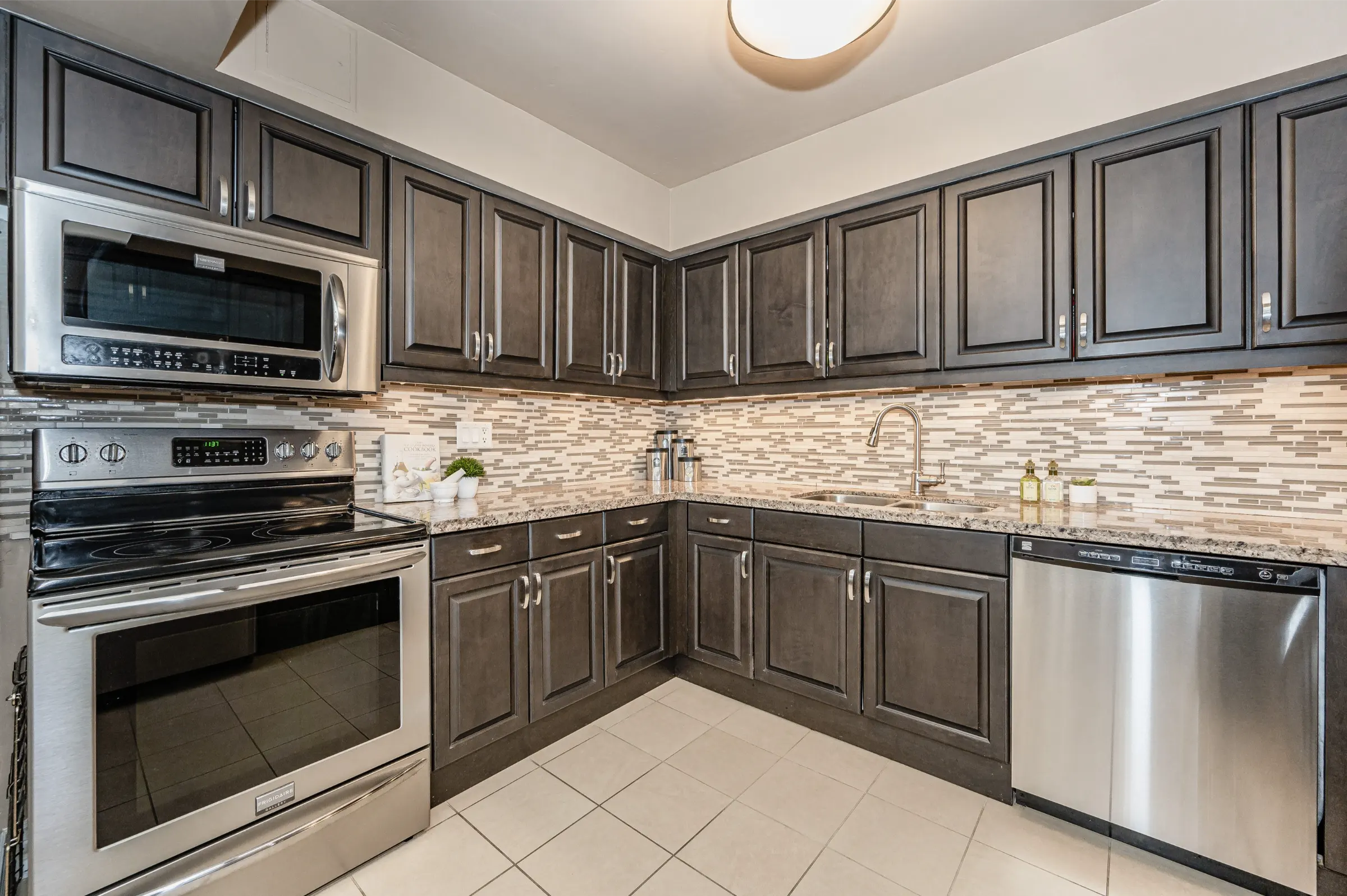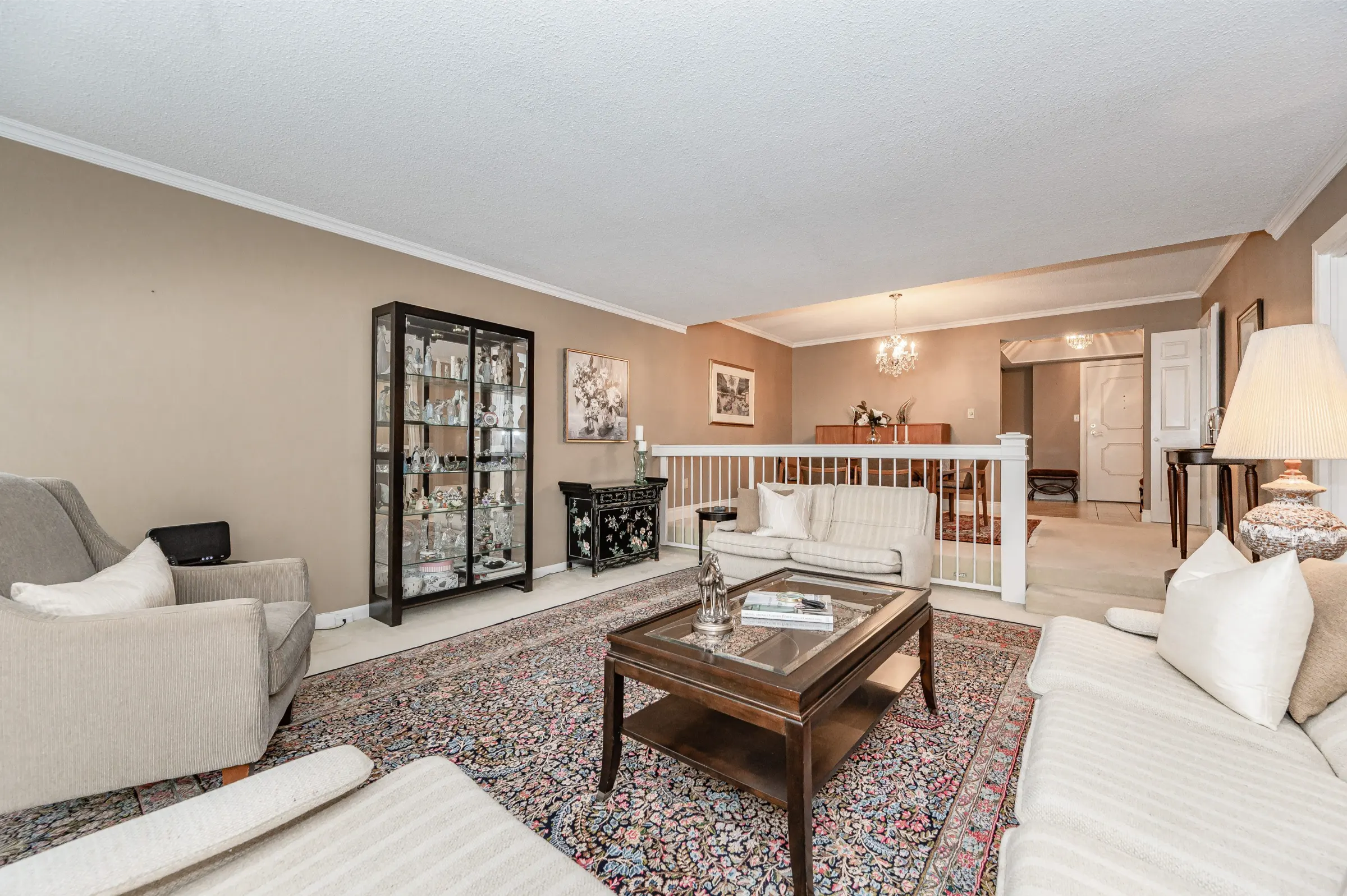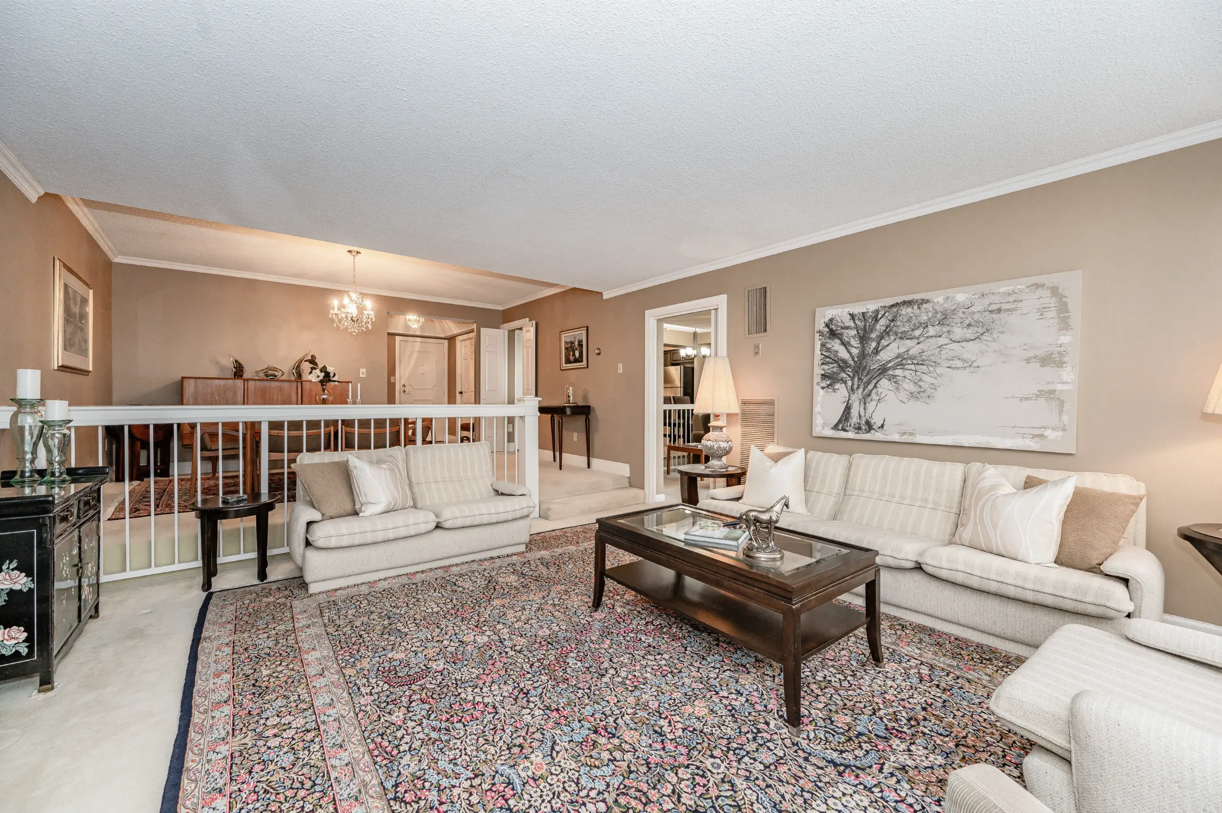 Well-maintained updated luxury suite offering inviting foyer with tray ceiling and entertainment size formal dining & living rooms with crown moulding. Gorgeous kitchen with stainless steel appliances, granite counter, stone backsplash, tile floor & upgraded lighting. Substantial breakfast room overlooking the bright family room with walk out to the large balcony with lovely views of the lake & lush gardens.