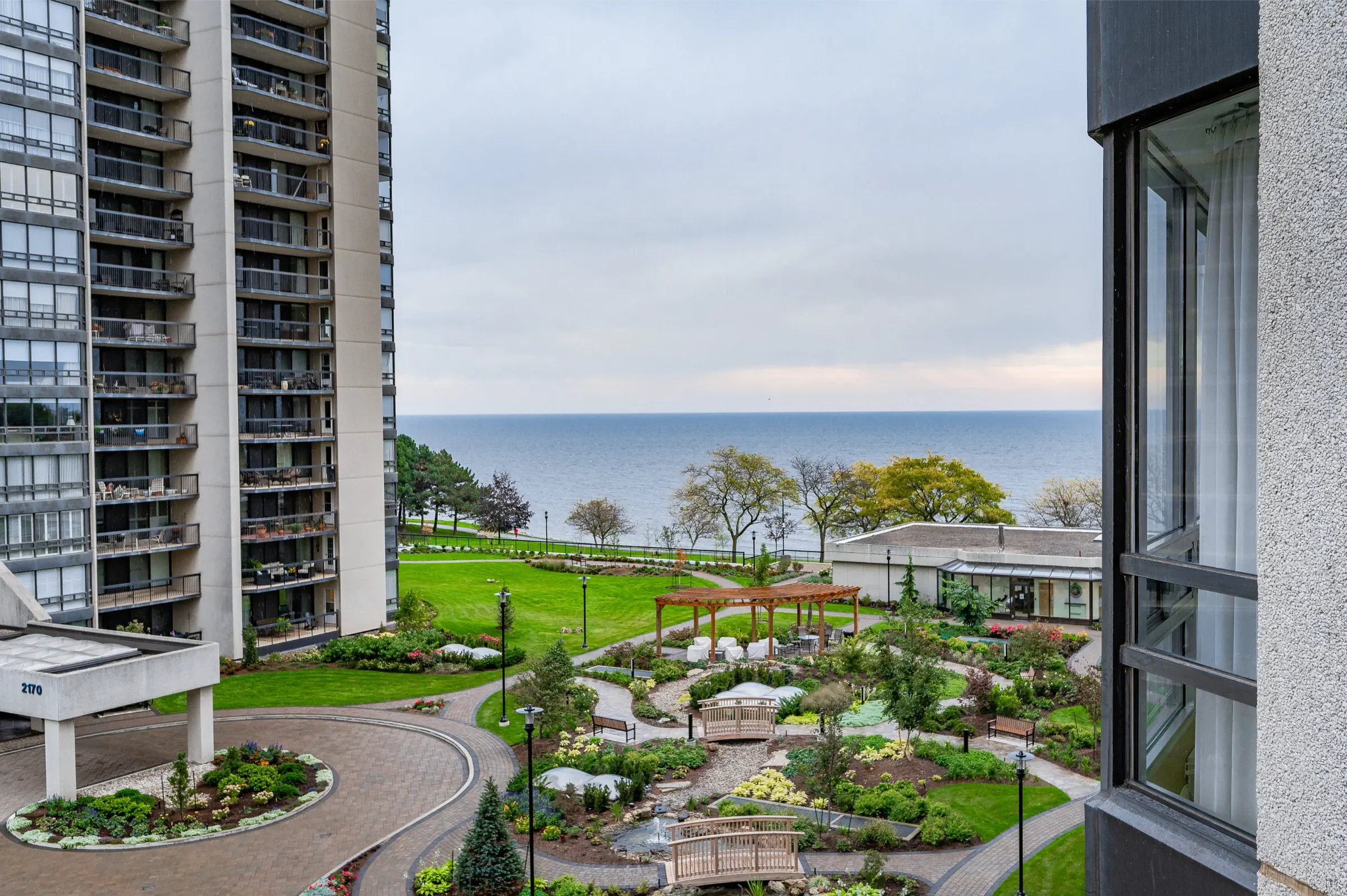 Extensive building amenities including 24-hour security guard, indoor pool & hot tub, exercise rooms & saunas, club house with library & sun decks overlooking the lake, party rooms, billiards, golf range, squash court, table tennis & yoga, workshop, art room, movie room, tennis court, outdoor seating areas with stunning gardens & gazebos, social activities, car wash, bike storage, visitor parking & more.