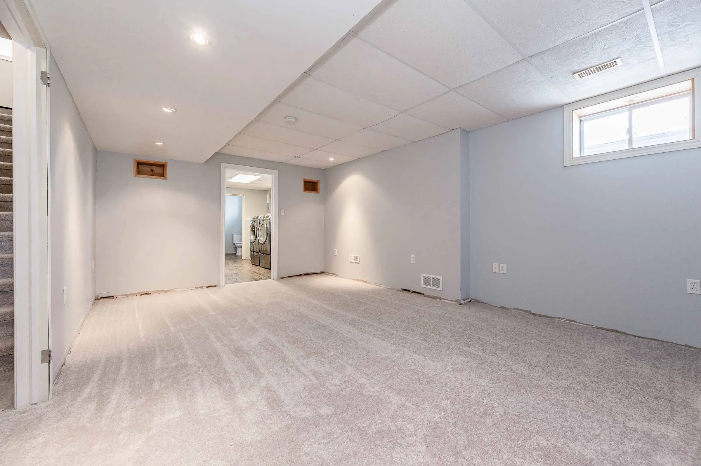 Spacious master bedroom with double door closet & windows with blinds. Handy 4-piece main bathroom with soaker tub & linen closet. Two additional good-sized bedrooms with large closets & windows with blinds. Fantastic lower level featuring new broadloom with a spacious recreation room, media room with pot lights, 3-piece bathroom, laundry room with sink, cold storage & lots of storage space.