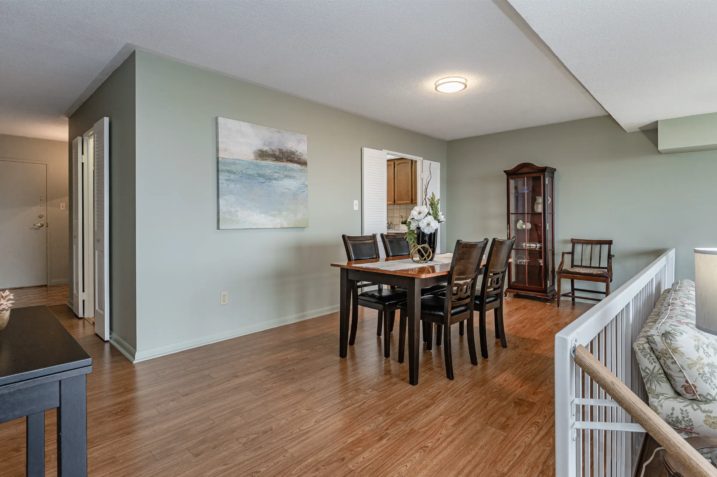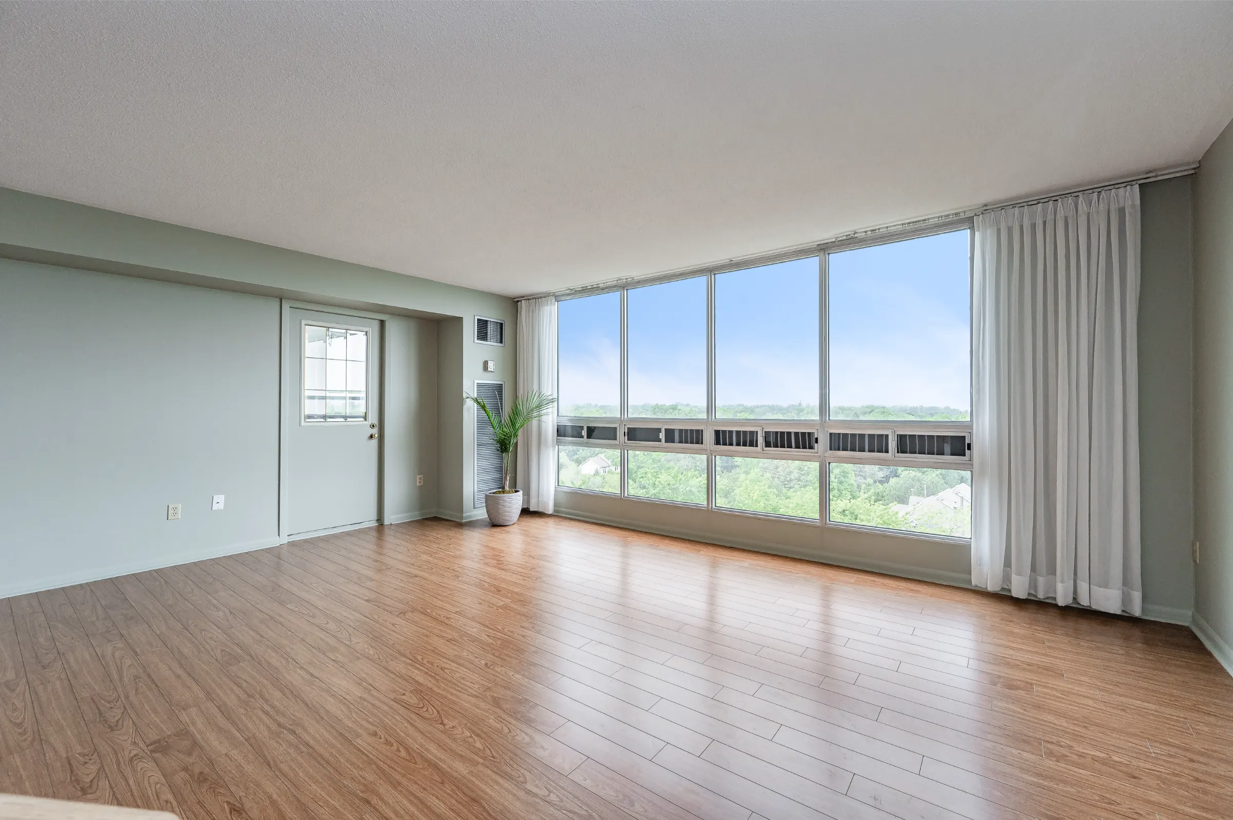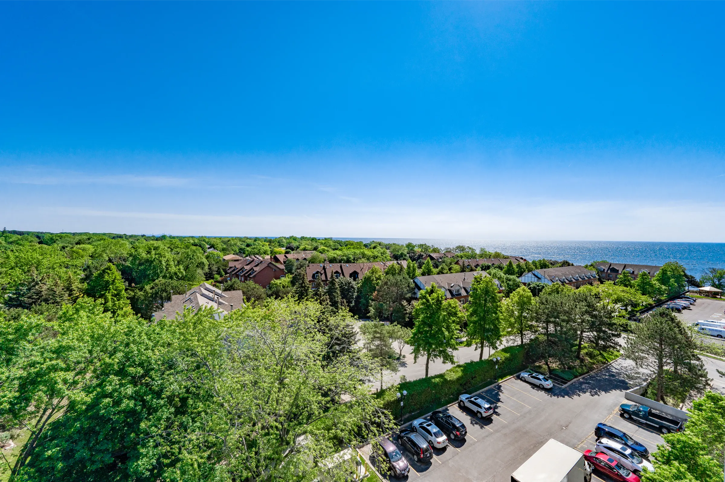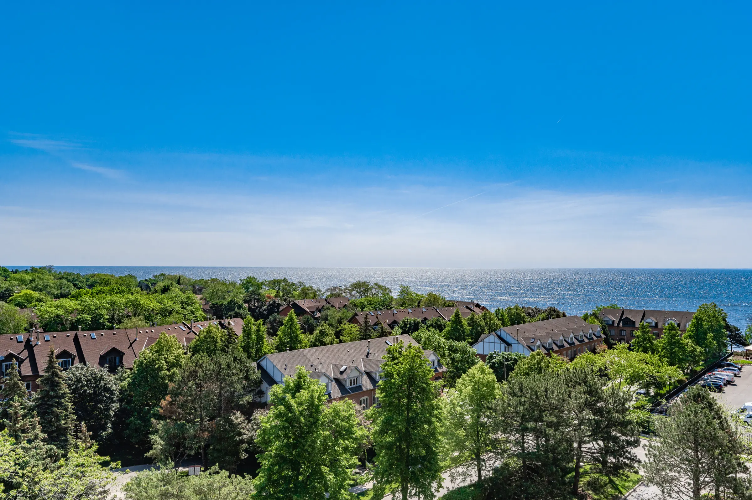 Rarely offered! Fabulous sun filled corner unit boasting forever unobstructed east, south and north views of Lake Ontario, treetops, the Toronto skyline and the Niagara Escarpment. The highly sought after ‘Cardinal’ model presenting 1555 square feet with two bedrooms, two bathrooms, private den and two walkouts to the large private balcony.