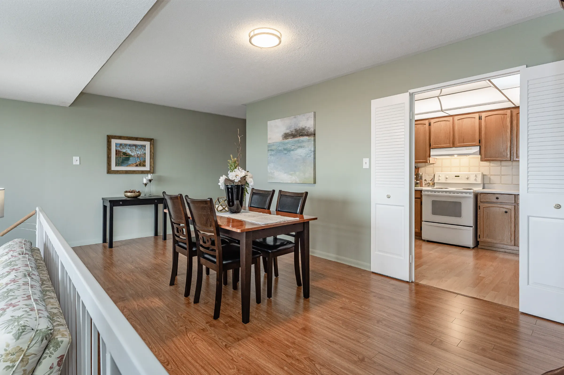 Master bedroom retreat featuring a sliding door walkout to the balcony, wall to wall mirrored closet doors, 4-piece ensuite and extra linen closet. Large bright second bedroom with sliding door closet handy to the 4-piece main bathroom with sink/vanity & tub/shower combination. Cozy private den and convenient laundry/storage room complete this excellent home boasting lots of room and storage. One owned underground parking space and exclusive use locker.