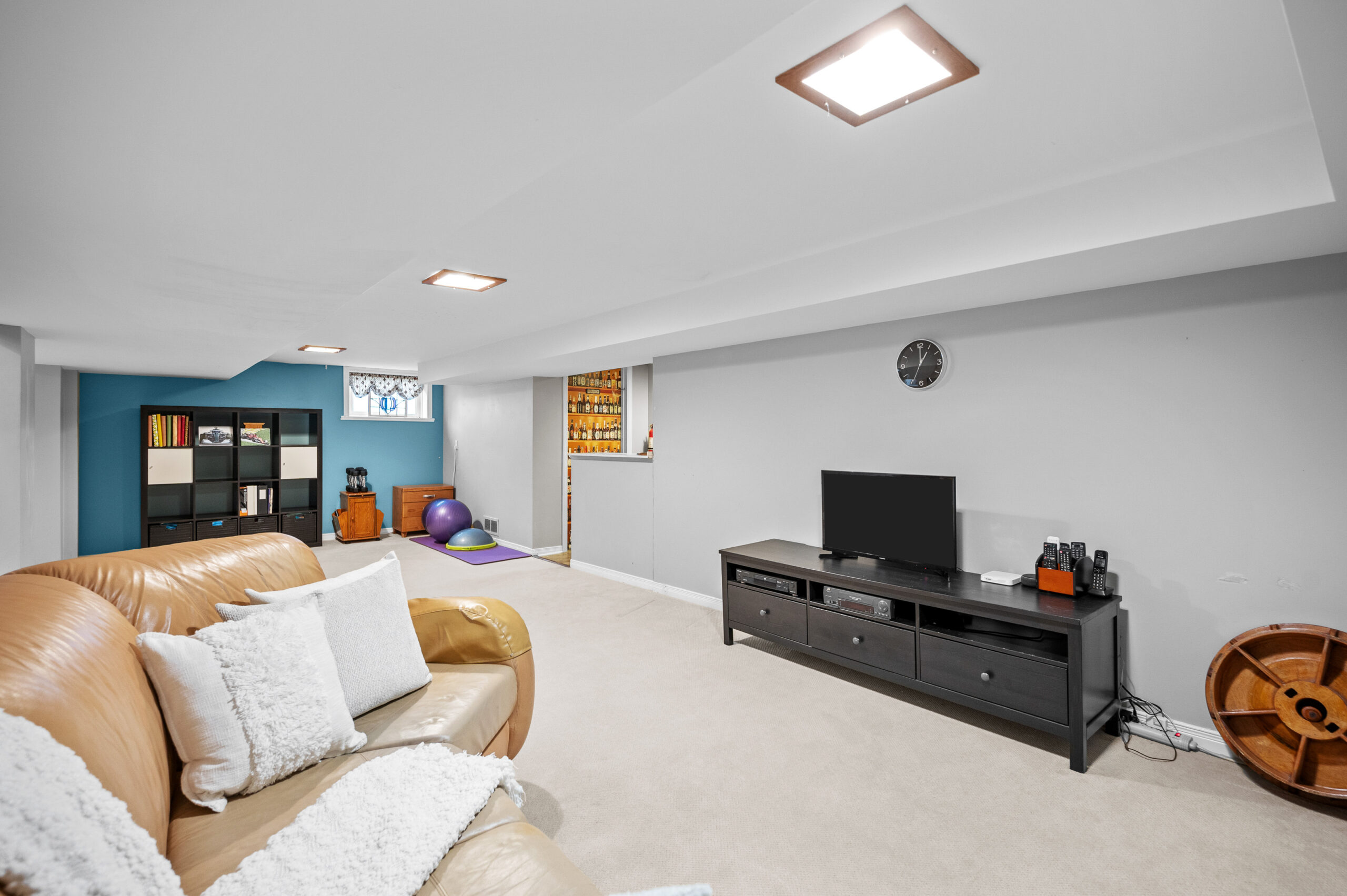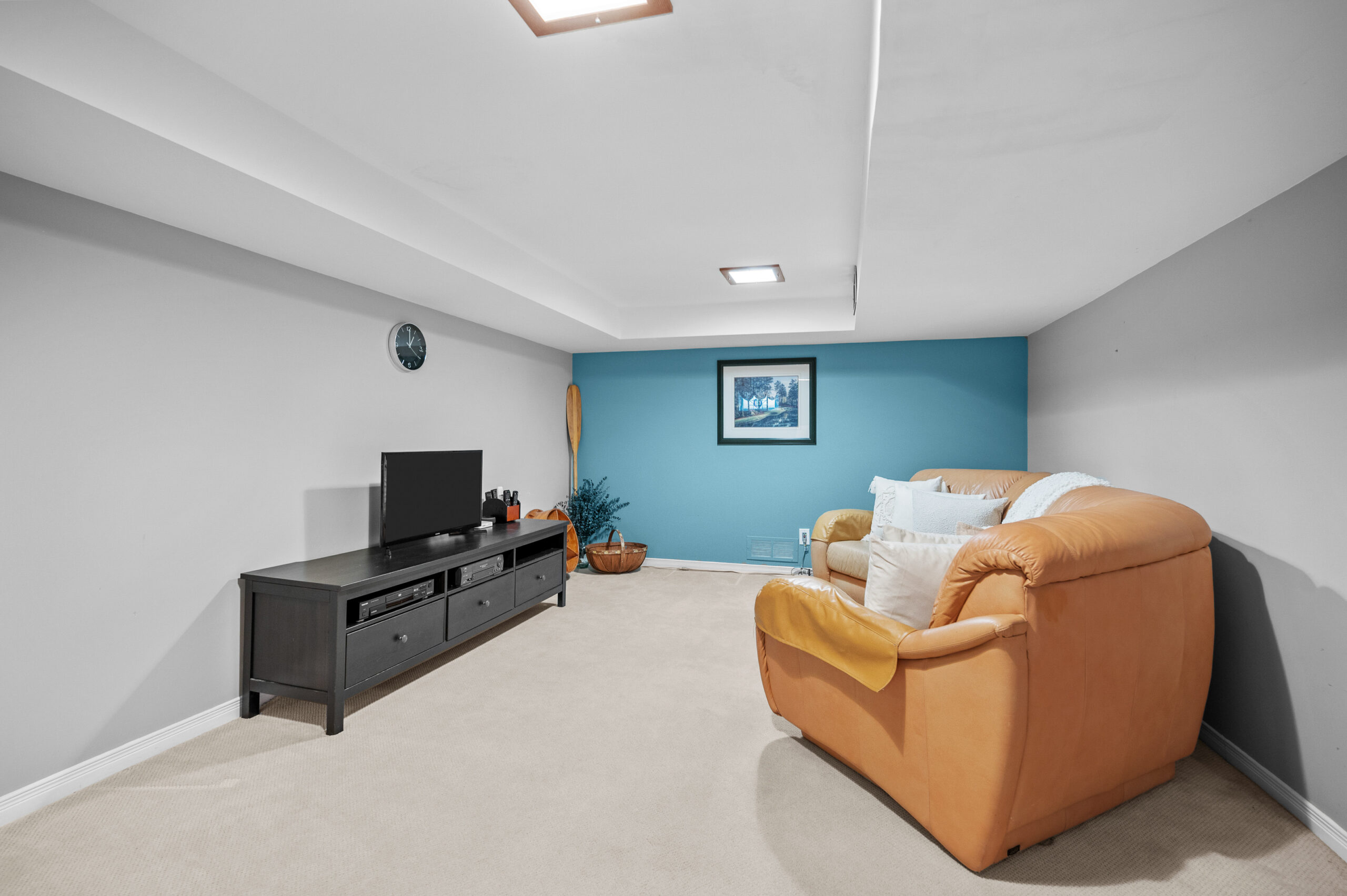 The lower level offers even more space to enjoy, with a large recreation room complete with a bar, an office that can easily be converted into a fourth bedroom, a 2-piece bathroom, and ample storage. Parking is a breeze with room for up to five vehicles in the driveway. The home’s front and back sprinkler systems add to the modern convenience.