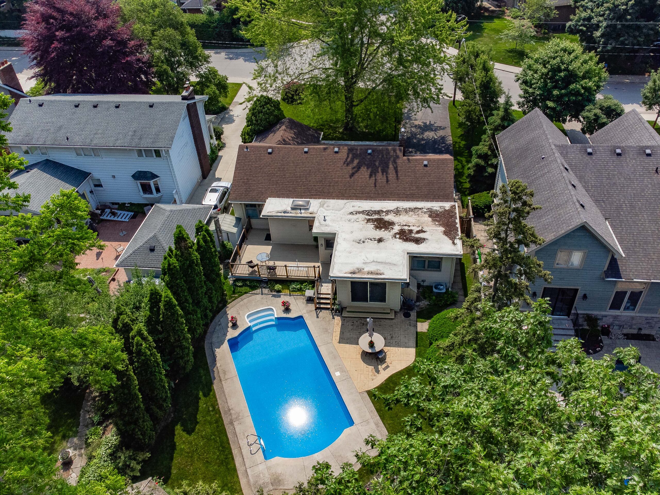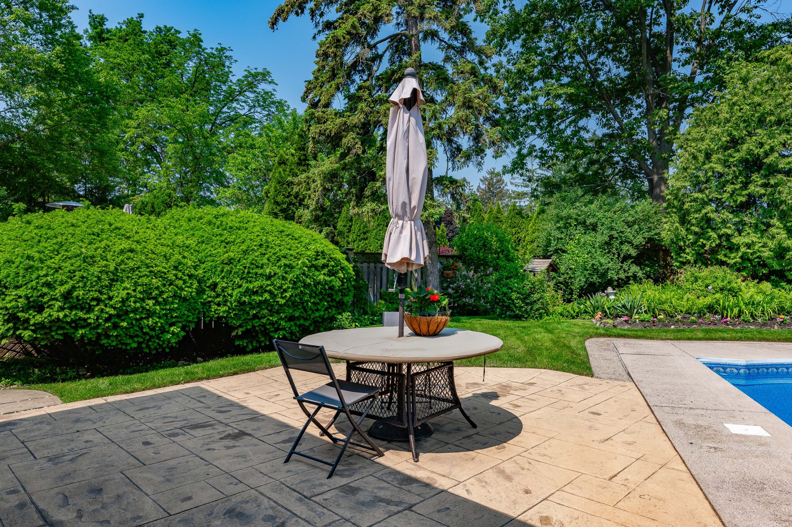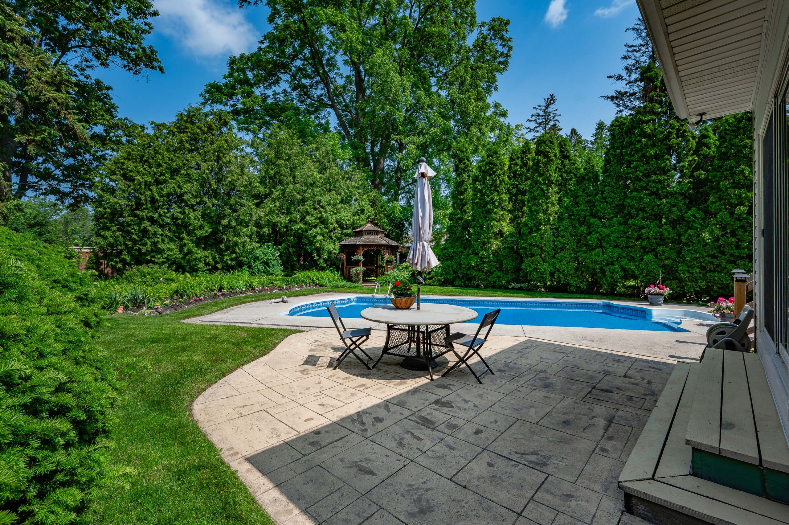 Step inside and discover a home that exudes warmth and atmosphere. The well-equipped kitchen features a skylight that fills the room with natural light, along with an abundance of cabinets, pull out drawers, built-in shelves and quartz counters. The walkout leads you to the private backyard complete with an inground pool, patio, large deck, and lush landscaping – a perfect setting for both entertaining and relaxation.