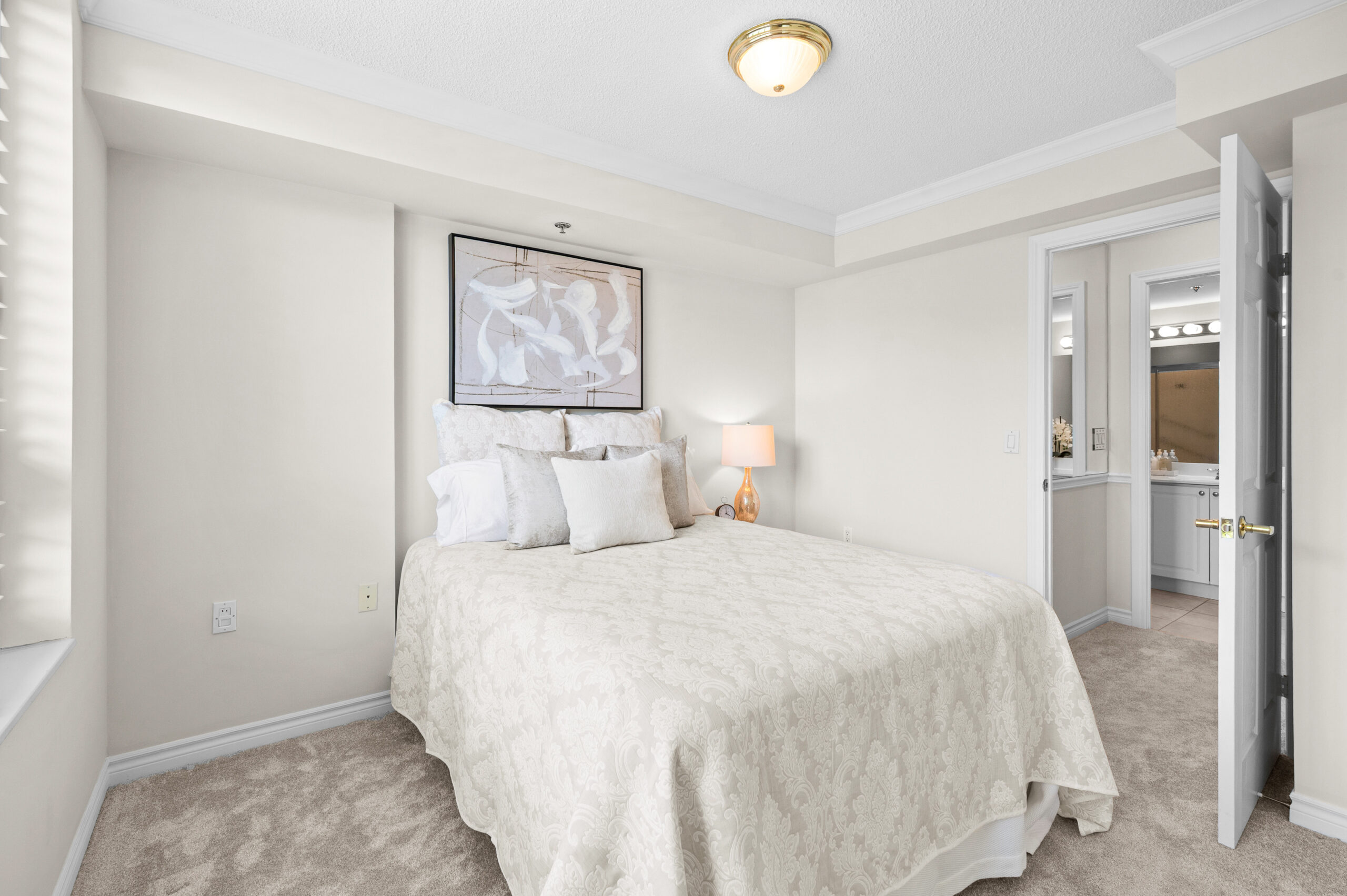 The primary suite is a true retreat, complete with a generous walk-in closet and a 4-piece ensuite bathroom. The bright second bedroom is equally impressive, with its large window and double closets. A well-appointed 3-piece bathroom and an in-suite laundry room outfitted with a sink and loads of cabinetry for extra storage add to the convenience of this well-appointed home. An exclusive use underground parking space and locker are also included.