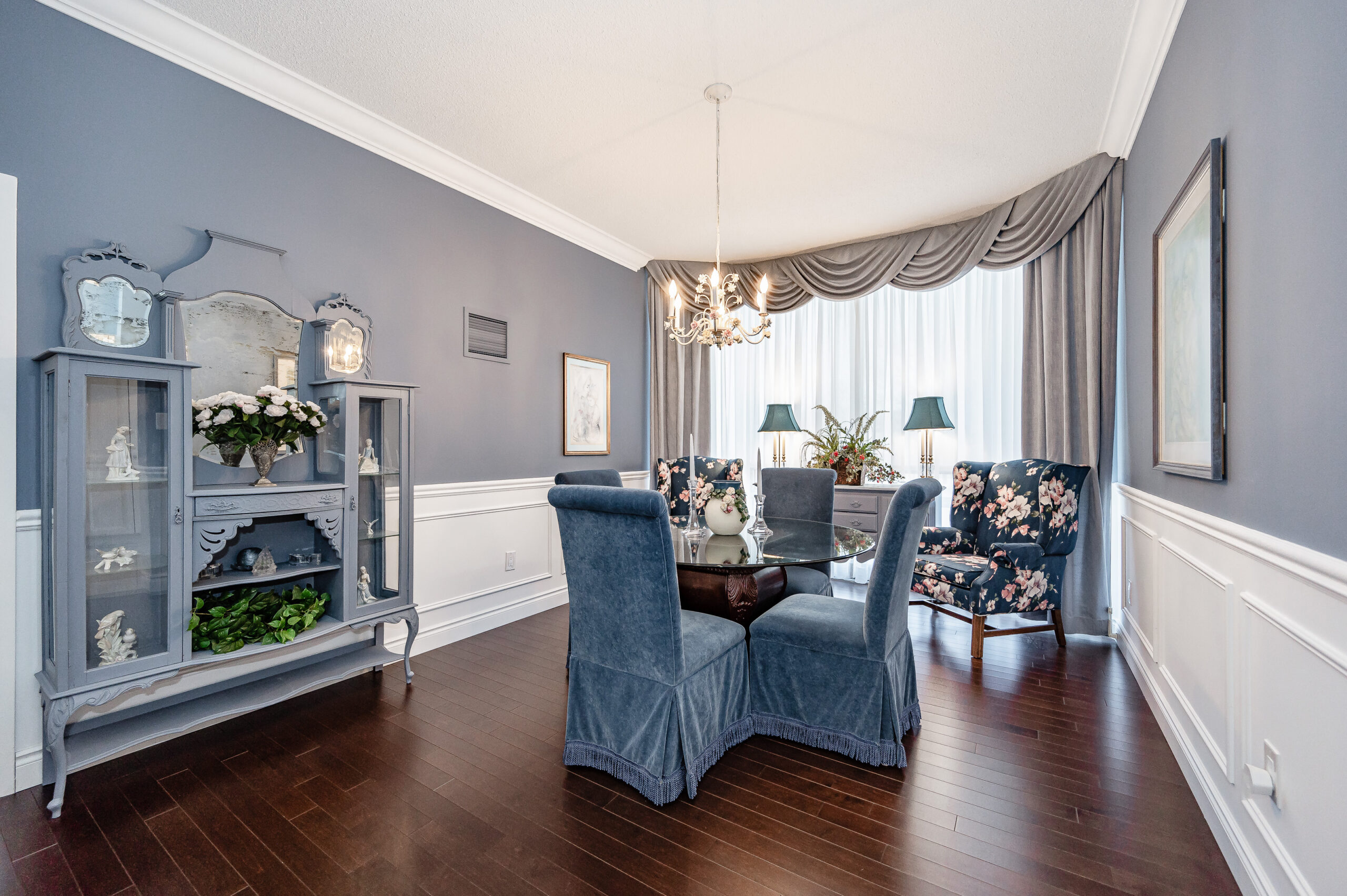 Spectacular, outstanding, updated two bedroom & den suite boasting 1,681 square feet offering luxurious upgrades with attention to detail throughout. Stylish spacious corner unit featuring an eat-in kitchen, formal dining & living rooms, private den, two bathrooms & laundry/storage room all on one level. Outfitted with floor to ceiling windows, almost 9’ ceilings, crown moulding, hardwood floors, wainscotting, pot lights, gorgeous quality light fixtures, custom built-ins & so much more. Enjoy the added convenience of not waiting for elevators!