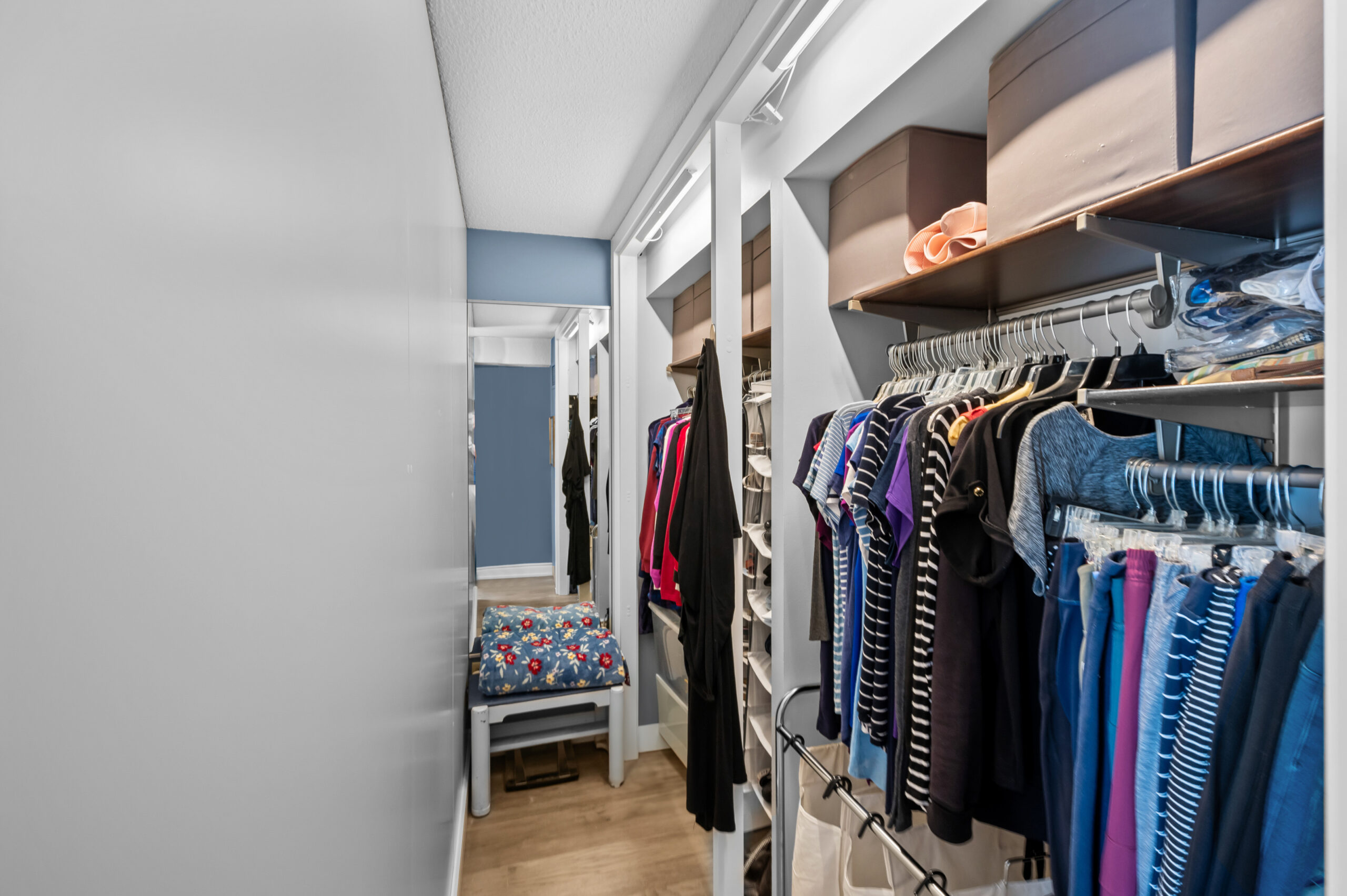 The private primary bedroom retreat boasts stunning custom-built cabinetry, a spacious walk-in closet, and a sliding glass door that opens to the balcony. It also features a luxurious 3-piece ensuite bathroom. A generous second bedroom is complemented by a spa-like 3-piece main bathroom, complete with a glass-enclosed walk-in shower. The suite also offers a cozy den and a spacious laundry room with additional storage. For added convenience, this unit includes two owned underground parking spaces and an exclusive use locker.