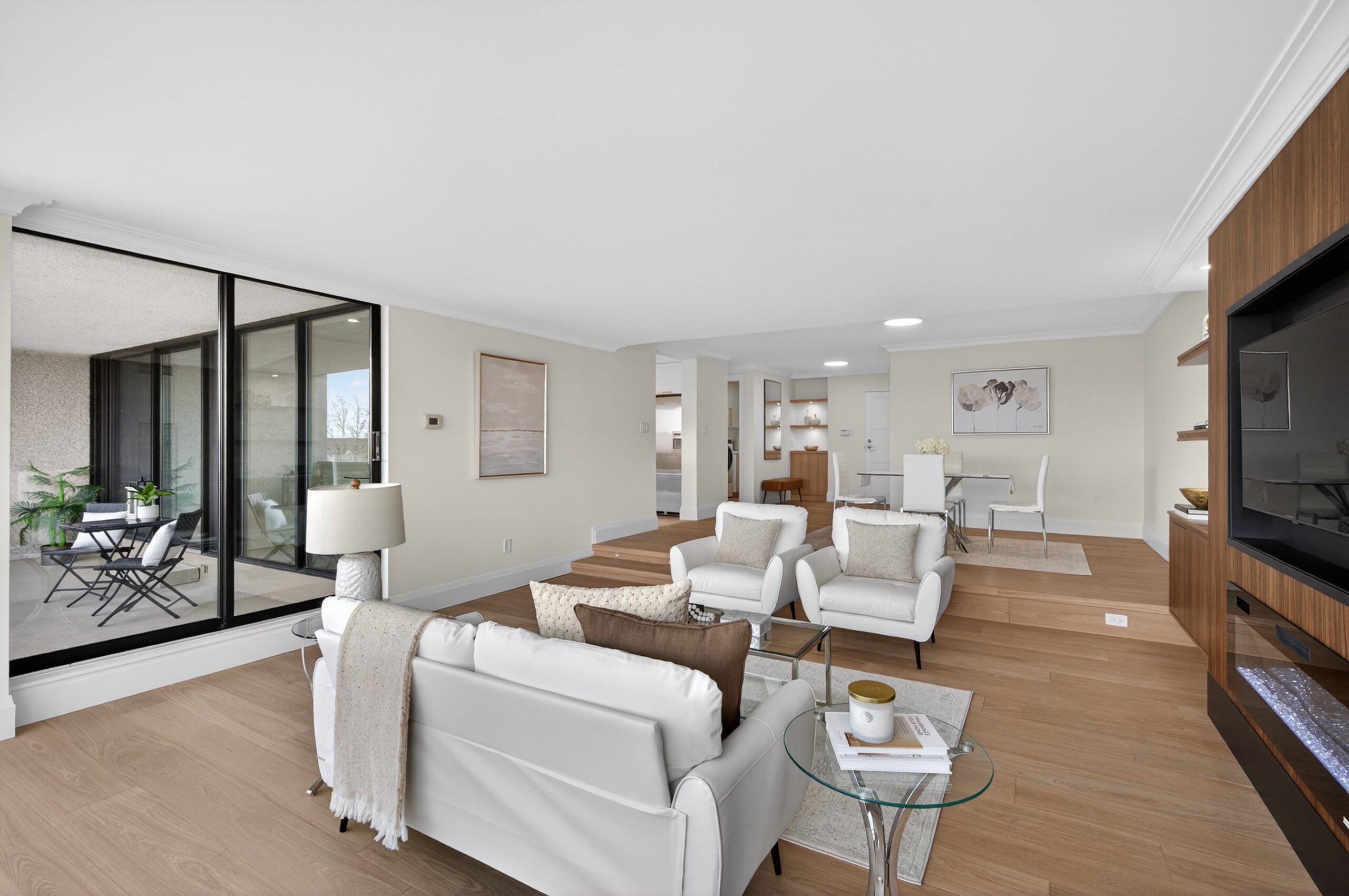 Experience the best of living at #403 – 2170 Marine Drive. Completely reimagined through a comprehensive renovation, this luxury suite boasts a redesigned layout to enhance flow and functionality, with impeccable attention to detail. Ceilings have been raised to maximize height in key areas, creating a bright, open, and airy feel rarely found in similar units. Significant upgrades include built-in storage solutions complemented by high-end quality finishes, custom millwork, and designer fixtures throughout. Finished with 7.5” Canadian ash hardwood flooring, smooth ceilings, crown moulding, custom 84” doors, and pot lighting.