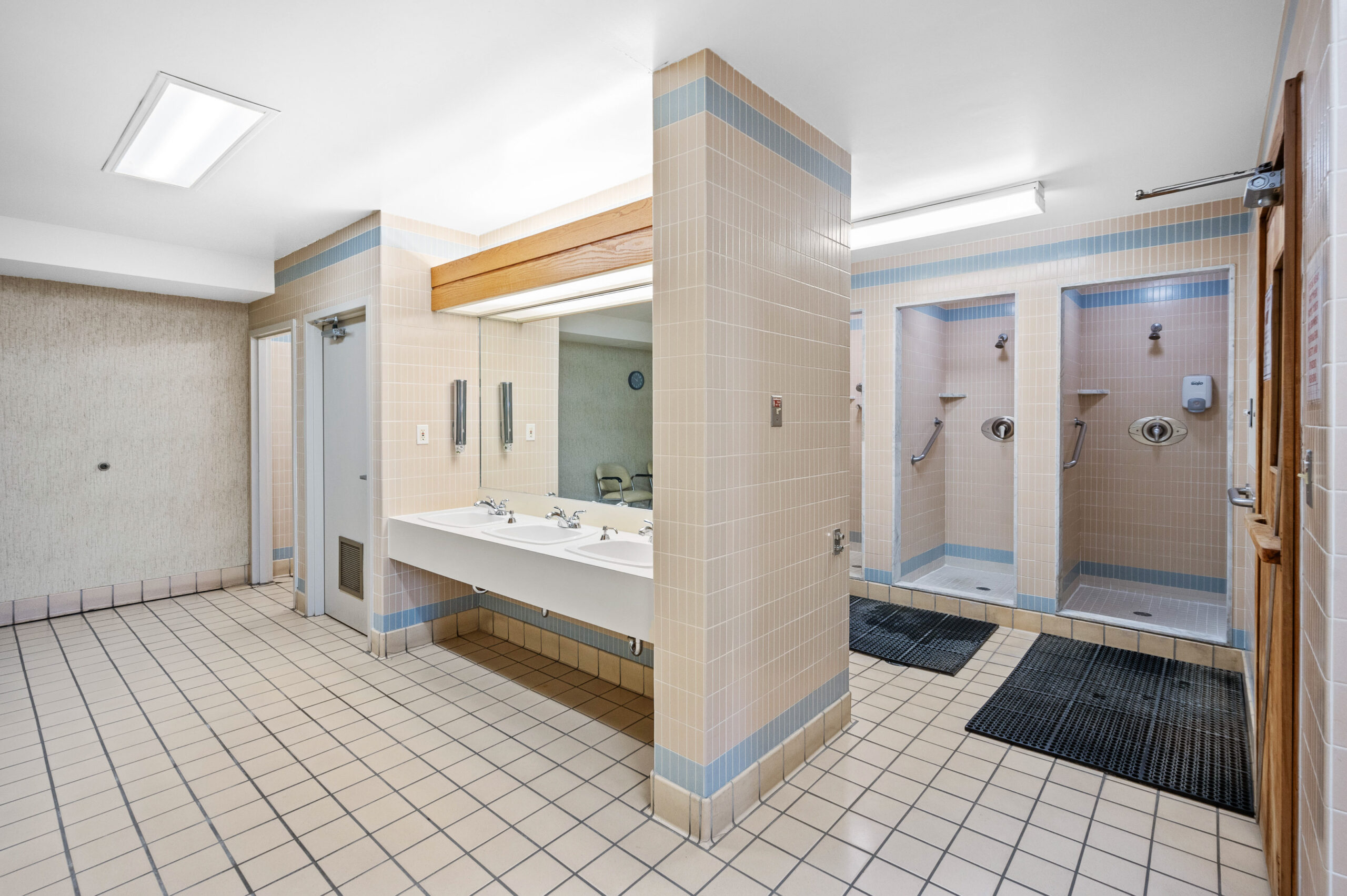 • Porcelain tile flooring