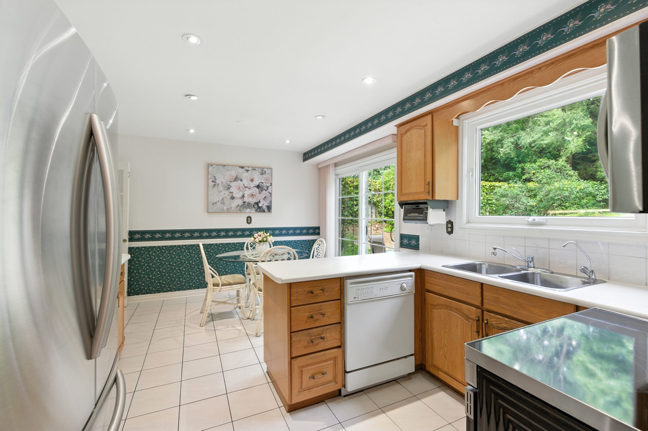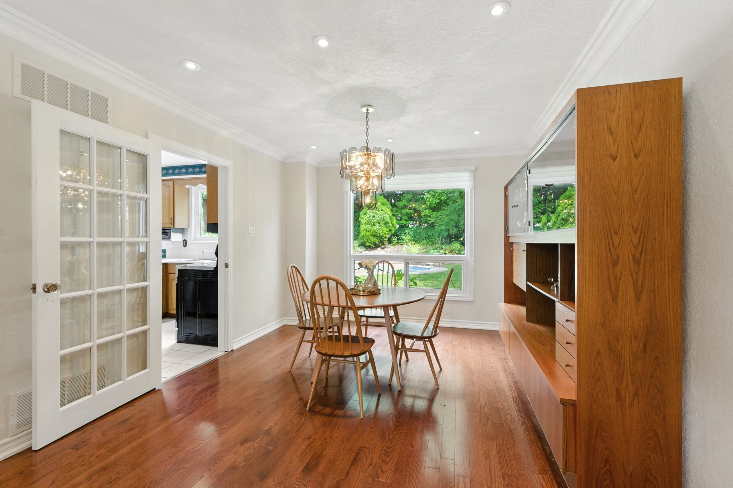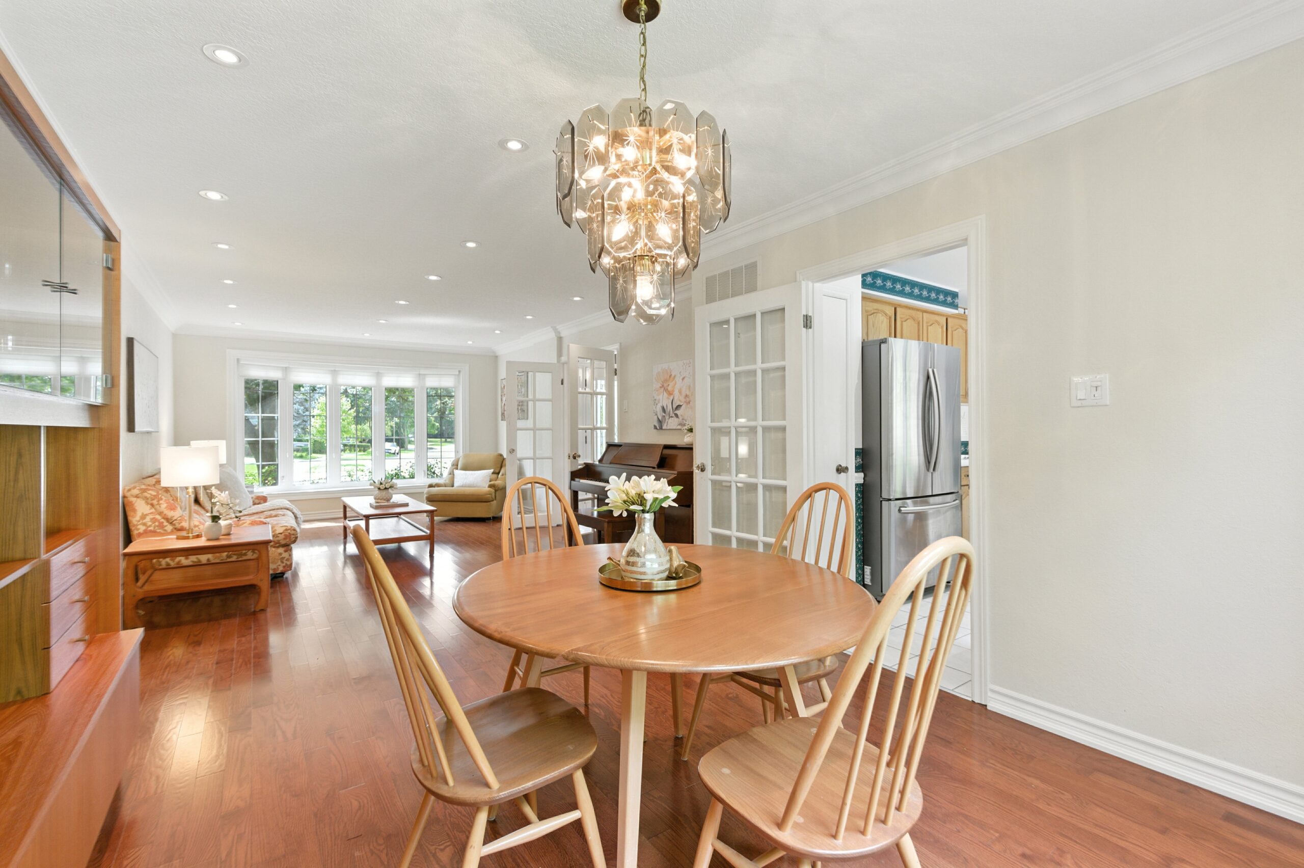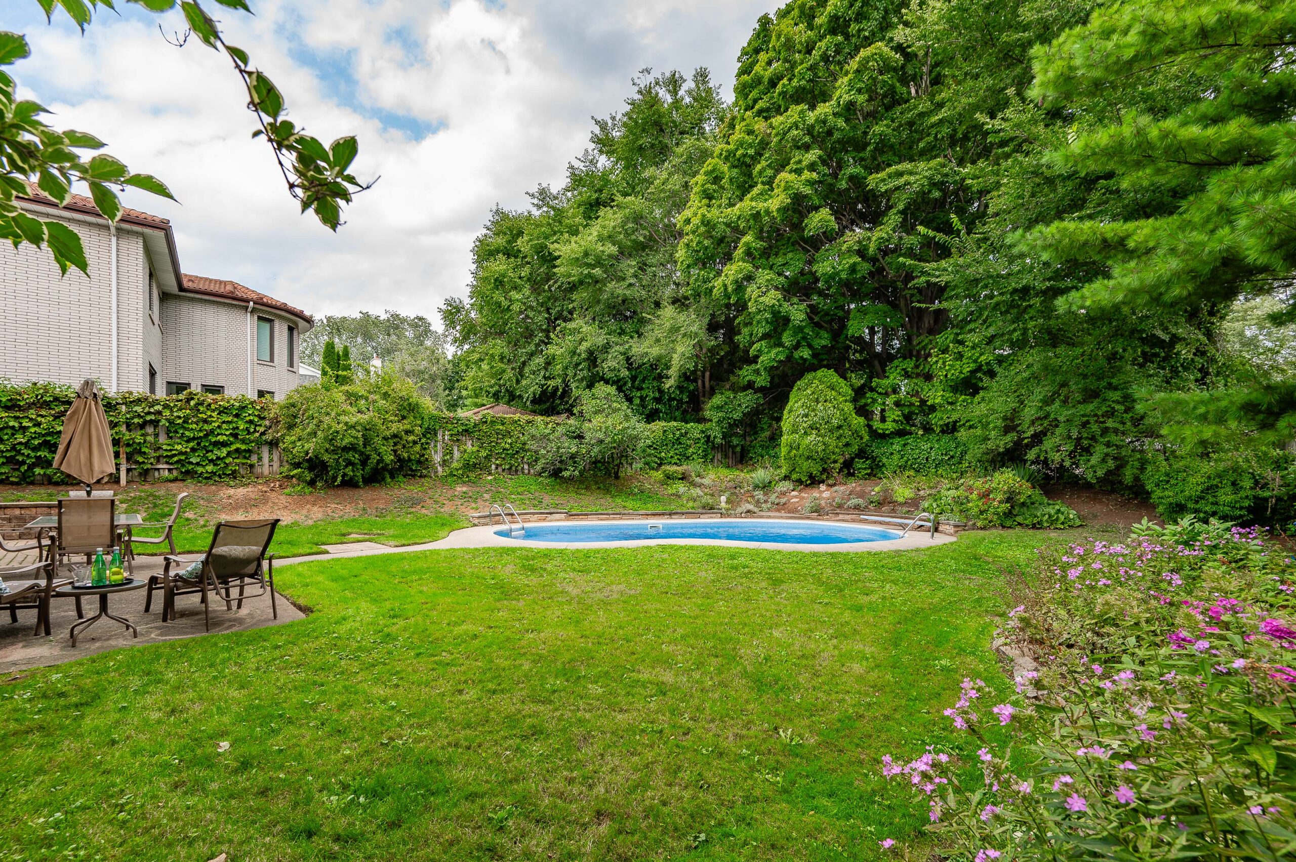 Lovingly cared for by the same owners for over 50 years, the home is surrounded by mature landscaping and towering trees, offering a rare level of privacy and tranquility. The fabulous backyard retreat boasts an in-ground swimming pool, patio, lush gardens and lawn space, creating an ideal setting for summertime enjoyment and peaceful escapes.