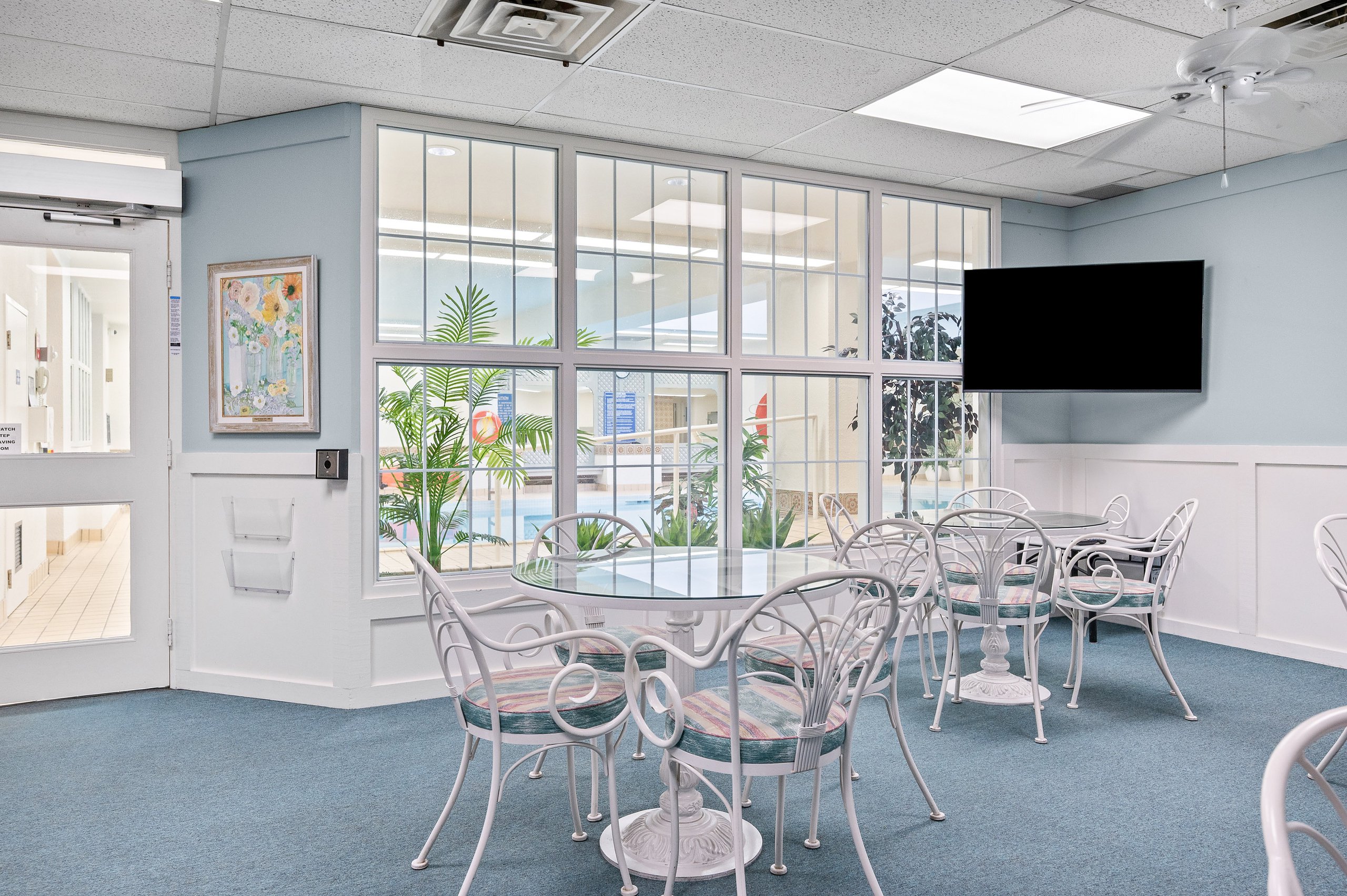 Residents enjoy extensive building amenities, including an indoor pool, exercise room, saunas, lounge and library, party room, billiards, indoor golf range, squash court, woodworking shop, paint room, ping pong room, darts and crafts room, social activities and more. Fabulous outdoor amenities include stunning gardens with seating areas, tennis/pickleball court, bocce ball area, and visitor parking.
