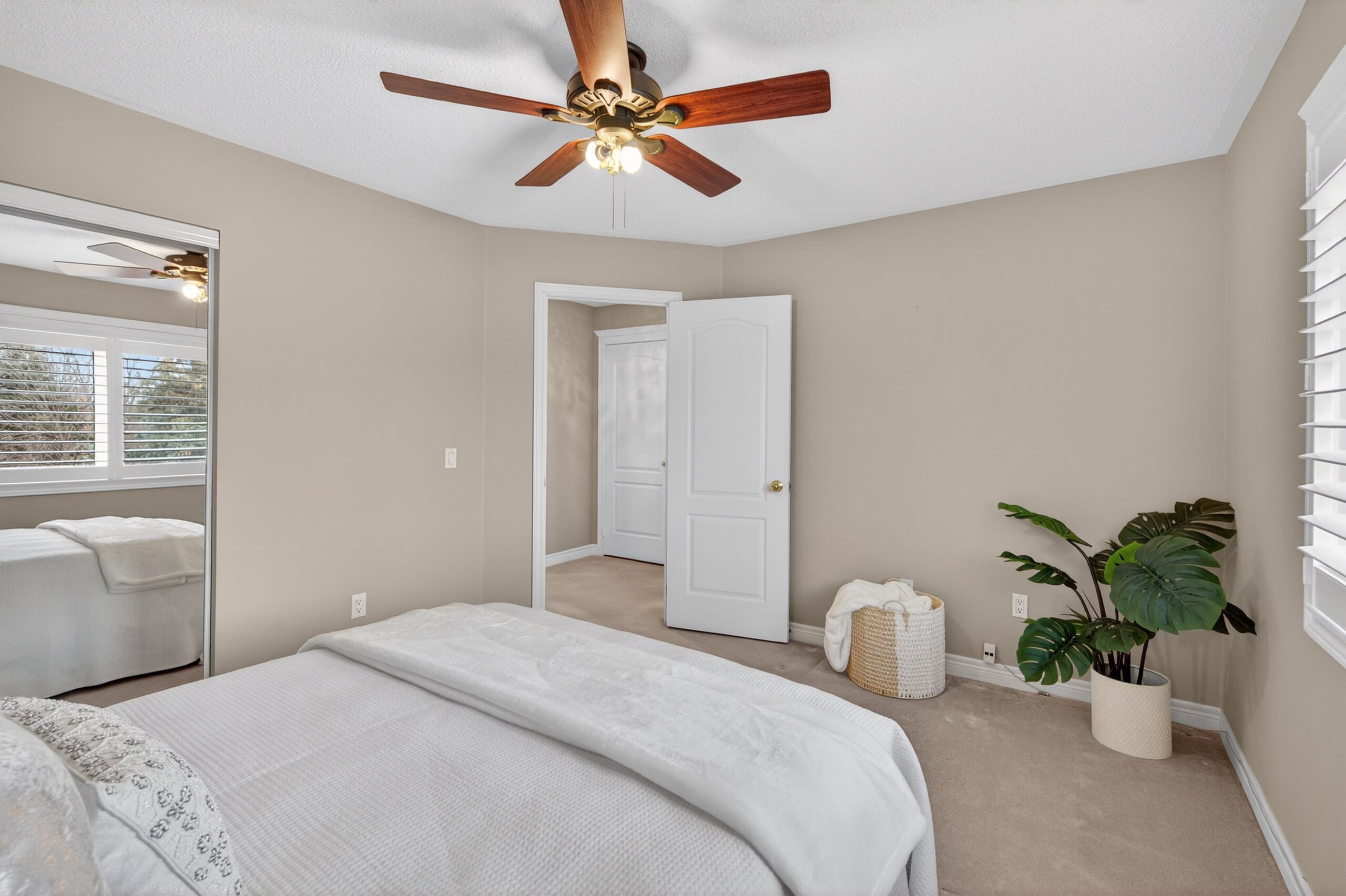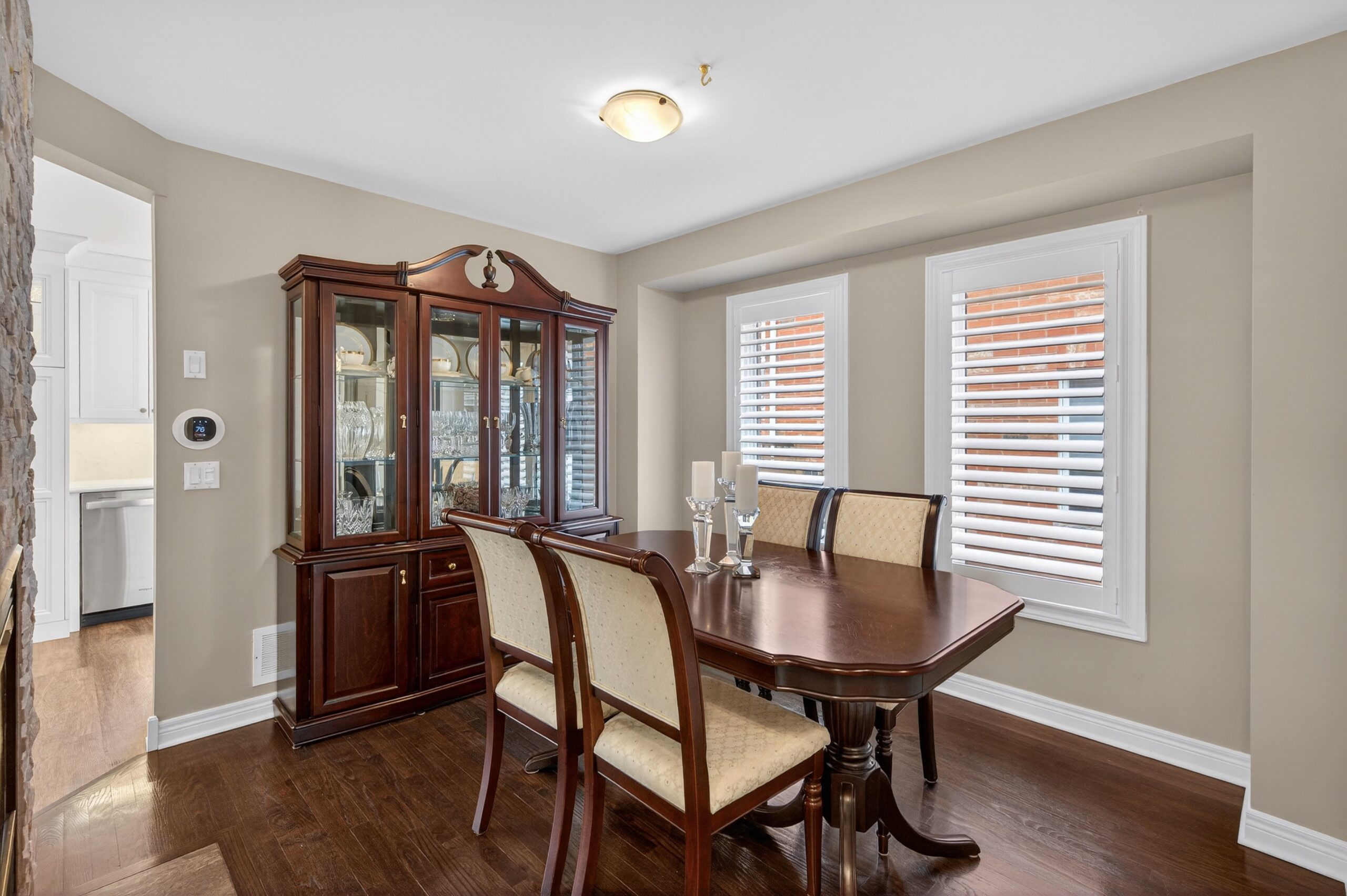 Thoughtful upgrades throughout include plantation shutters, pot lights, smooth ceilings, hardwood flooring, luxury vinyl plank flooring, designer light fixtures, and a Lutron lighting system with remote controls. Mechanical updates include furnace and air conditioner (2024), Ecobee smart thermostat with remote app control (2024) and some reinforced doors and windows for added security.