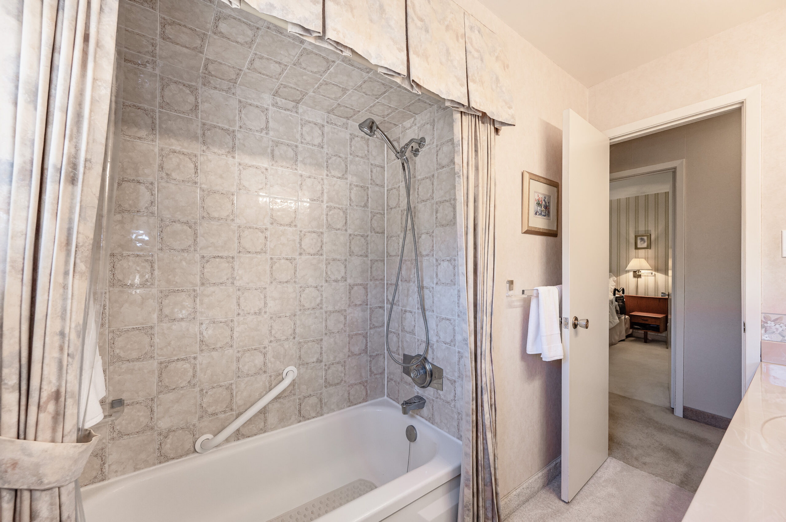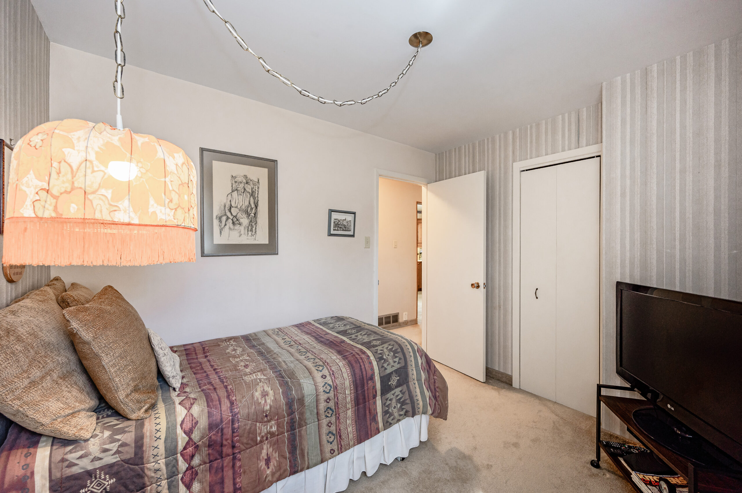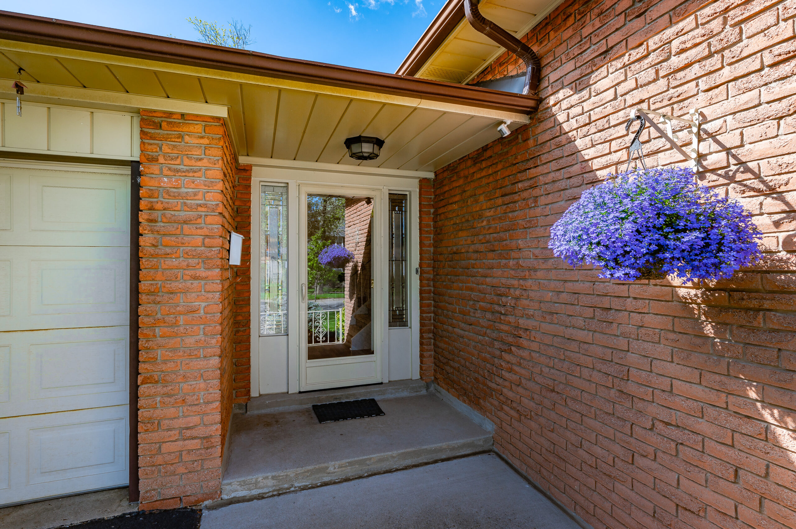 Enjoy the fenced backyard, complete with a large, tiled patio—ideal for entertaining or outdoor enjoyment—surrounded by a variety of mature trees and greenery. The home’s stylish brick exterior is accented with complementary window shutters and an inviting front entrance featuring a handsome glass storm door. The extra-wide driveway easily accommodates parking for four vehicles.